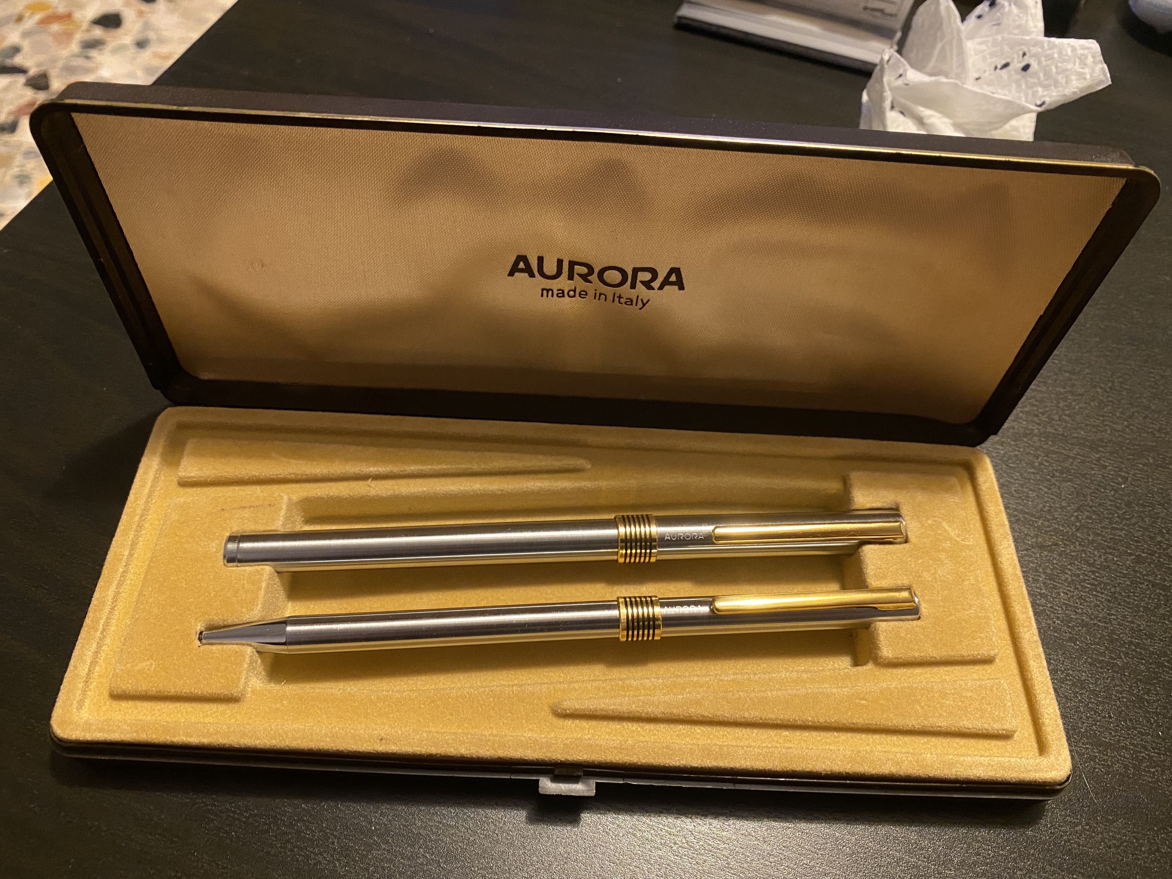 Buongiorno, ieri ad un mercatino dell’usato ho comprato questo confanetto contenente queste due penne Aurora.