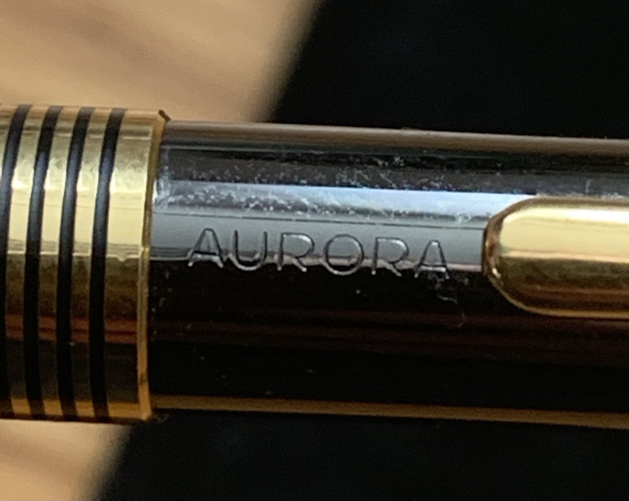 Tra la clip e la veretta è incisa la scritta "AURORA" in verticale, non sono presente altre scritte o simboli sulla penna.