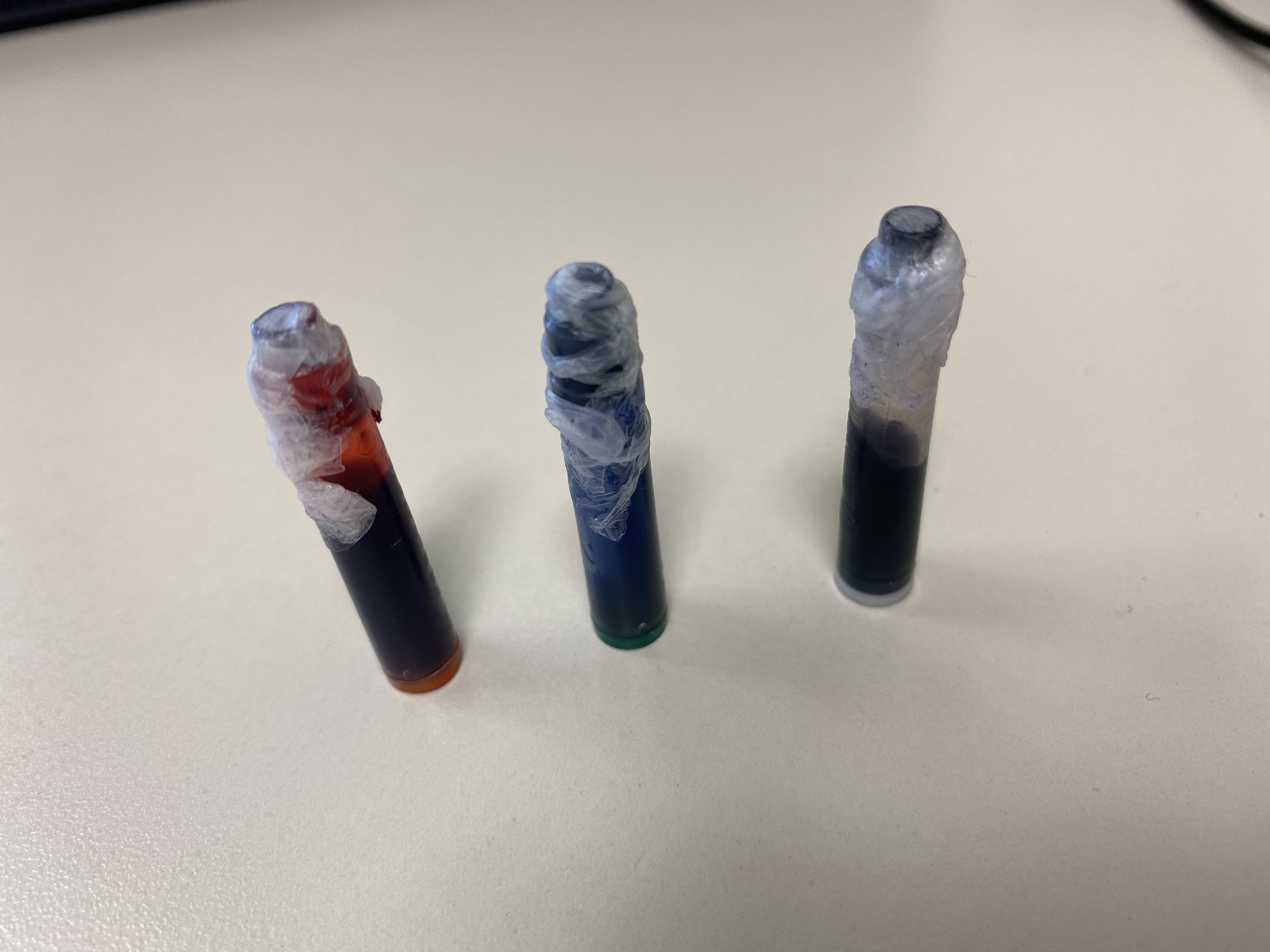 Buon pomeriggio a tutti, in altro post, qualche settimana fa, avevo accennato a come chiudo io le cartucce e, siccome è una cosa semplice che richiede solo del normale scotch, ho pensato che potrebbe interessare, quindi oggi, siccome ho dovuto riporre una cartuccia appena riempita ma del colore sbagliato, ho approfittato per fare qualche foto passo passo del procedimento.