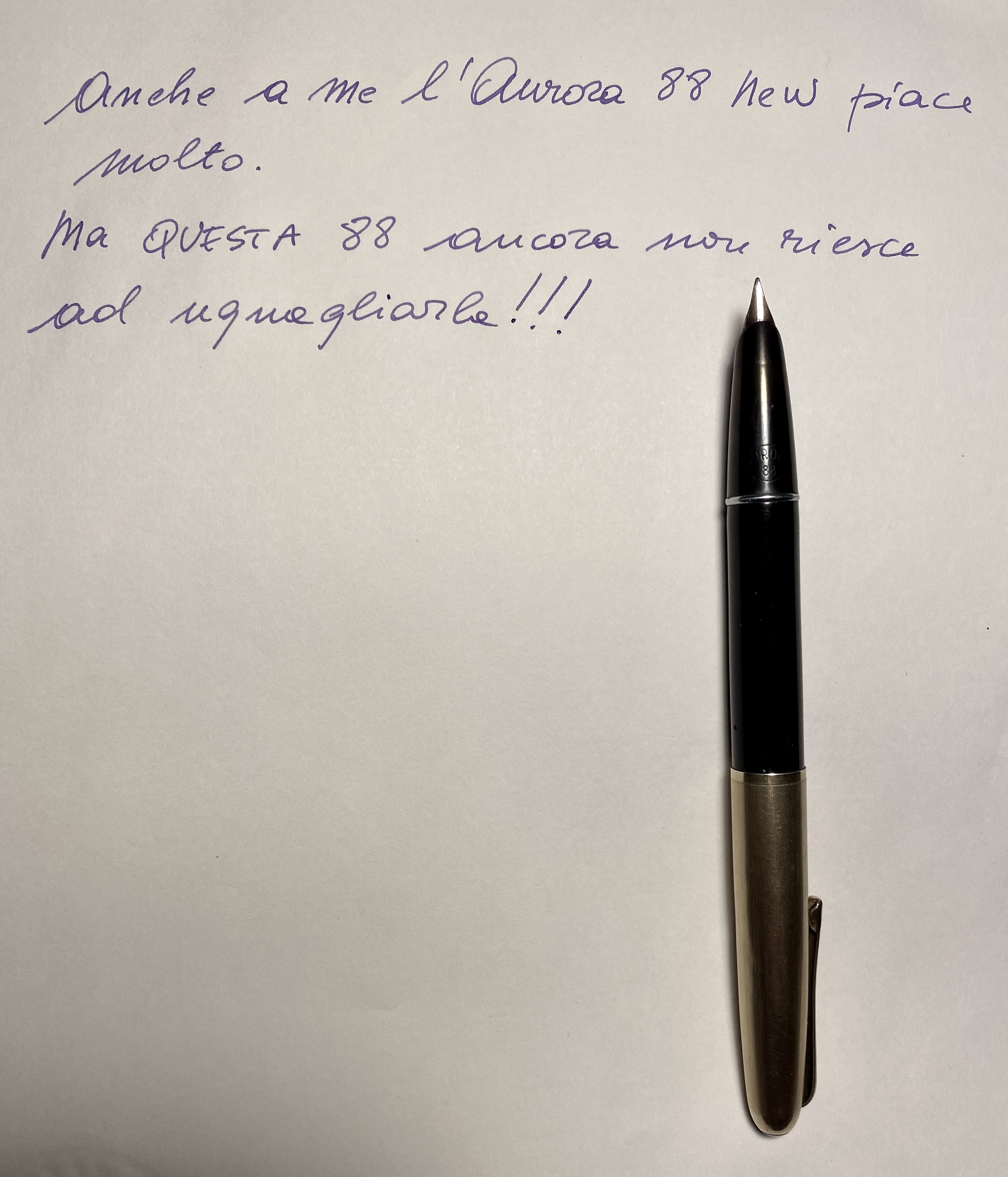 Salve, sto trattando l'acquisto di una penna stilografica Aurora 88 Big con pennino a rebbi lunghi in quanto sullo stesso non risulta inciso il nome della casa. Sono poco esperto soprattutto in penne Aurora. Ultimamente ho acquistato una 88 Demonstrator perchè offertamemi ad un prezzo che ritengo più che vantaggioso, ma a me piace la classica penna stilografica in resina nera con rifiniture dorate per cui, da diverso tempo, miro all'acquisto di una Aurora 88 simile. In merito a quella con rebbi lunghi, leggendo vari articoli, non ho ben capito se è stata sostituita perchè presentava delle anomalie oppure per il motivo che sul pennino stesso non era inciso il nome "Aurora". Quindi chiedo consigli sull'acquisto in oggetto e se ci sono particolarità delle penna a cui devo rivolgere attenzione prima di prenderla. Grazie