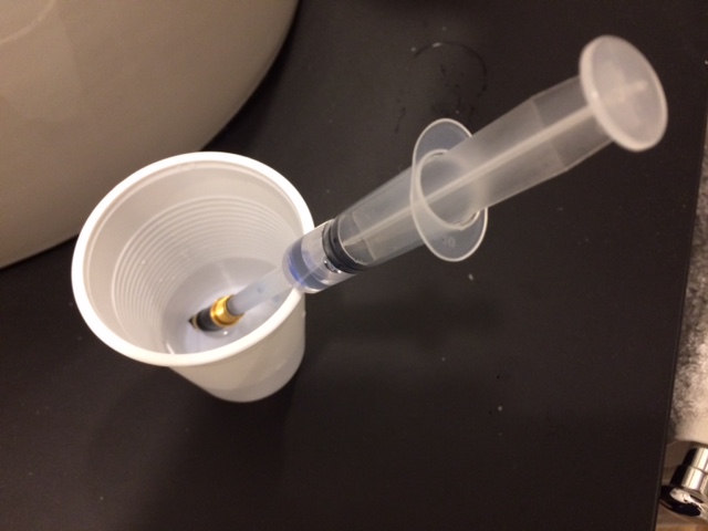 Per adesso sto utilizzando la siringa che spinge acqua dalla cartuccia, anche se così non si produce un flusso lento ma costante come è stato detto sopra.