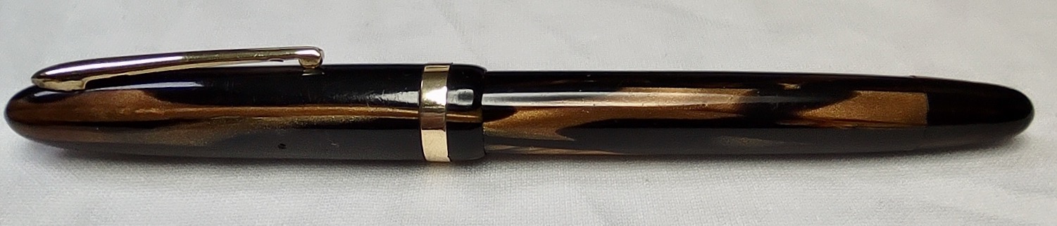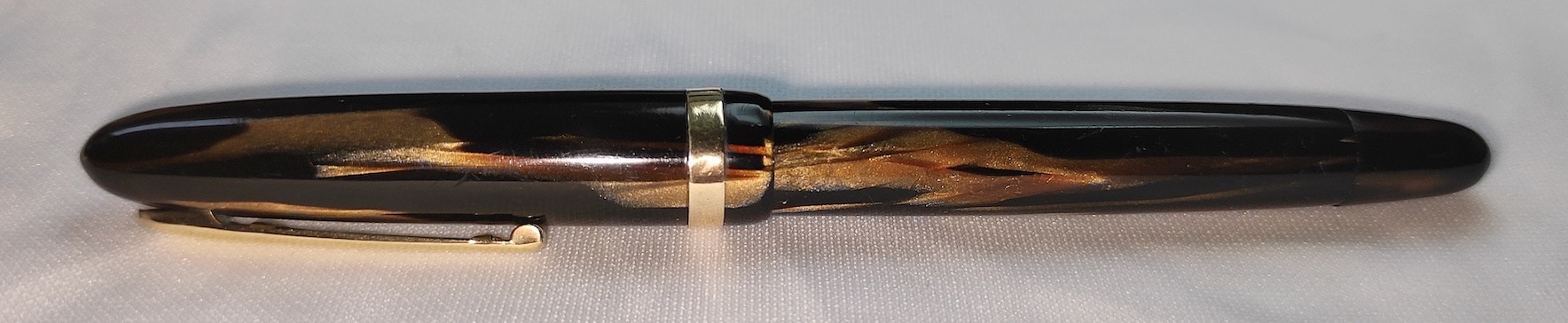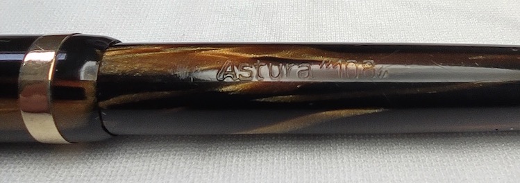 Benché la Astura "108" si un modello noto , lascio qui qualche foto di questa stilo perché reputo molto bella la celluloide con la quale è stata realizzata: colorazione di base castano scuro e fiammata in color nocciola, un accostamento che può sembrare quasi banale, ma di ottima resa visiva.