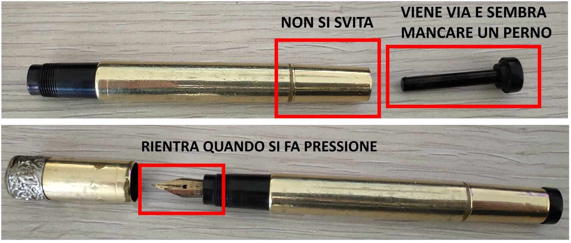 Allego foto della penna e dei problemi rilevati (il principale, appunto, è che non riesco a svitare la manopola