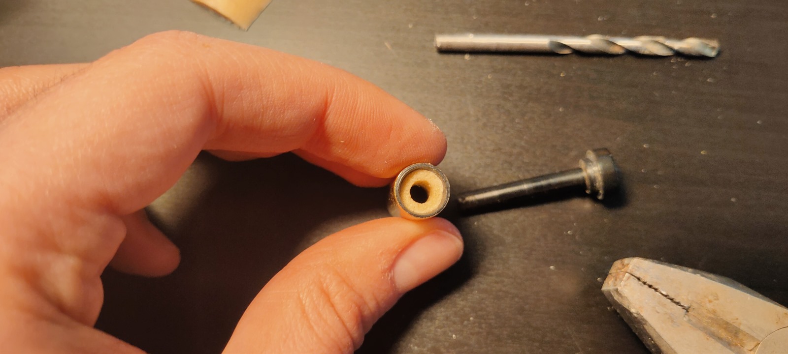 Per poi crearne una nuova in sughero sintetico (in pratica ricavata da quei tappi per vino che sono in una specie di plastica spugnosa molto densa)