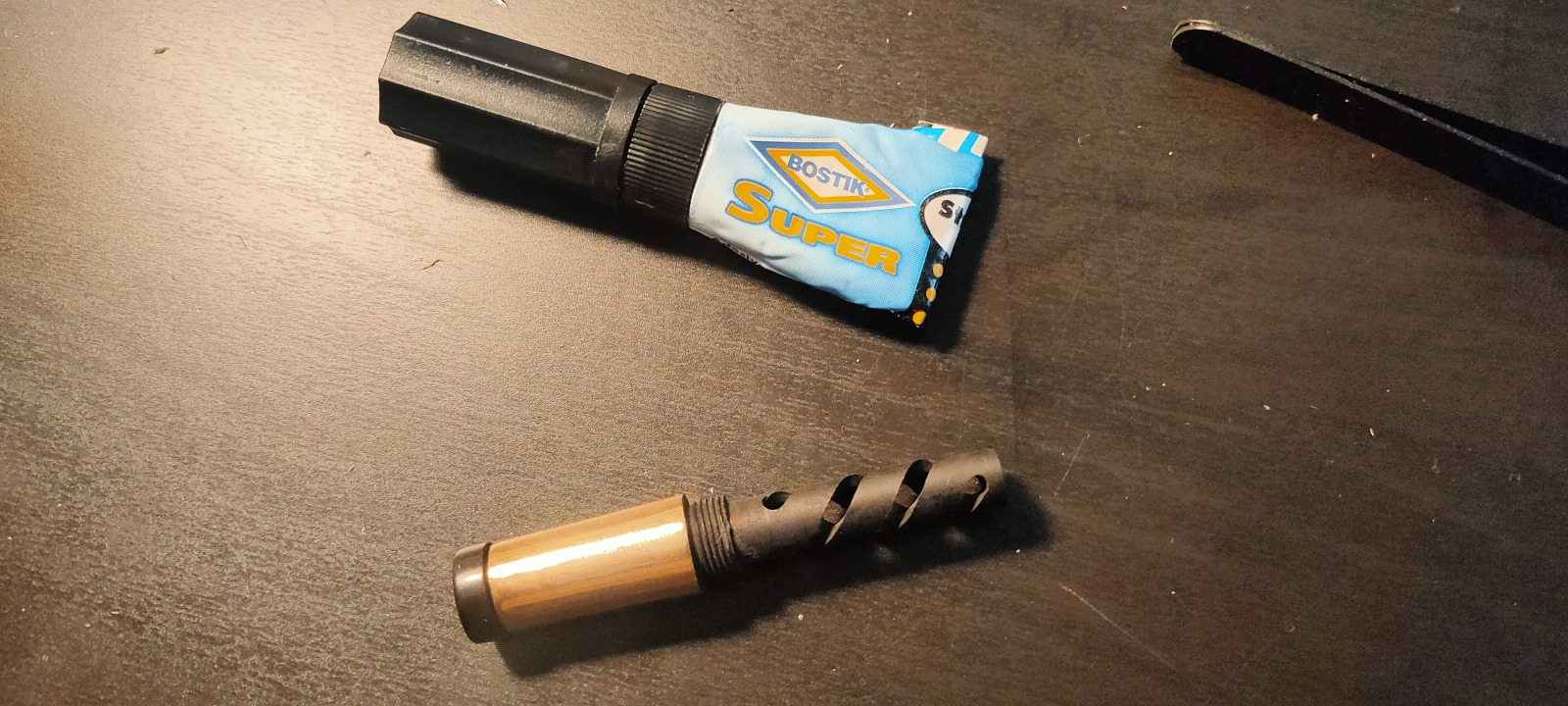 Quindi ho incollato con una goccia di cianoacrilato l'elica all'astina che la collega al fondello.