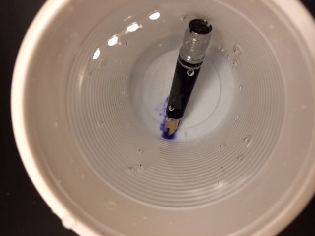 Dopo 12 ore di bagno, questa mattina l'acqua nel bicchierino era completamente blu! Sciacquato e cambiato tutto, vediamo cosa succede questa sera...