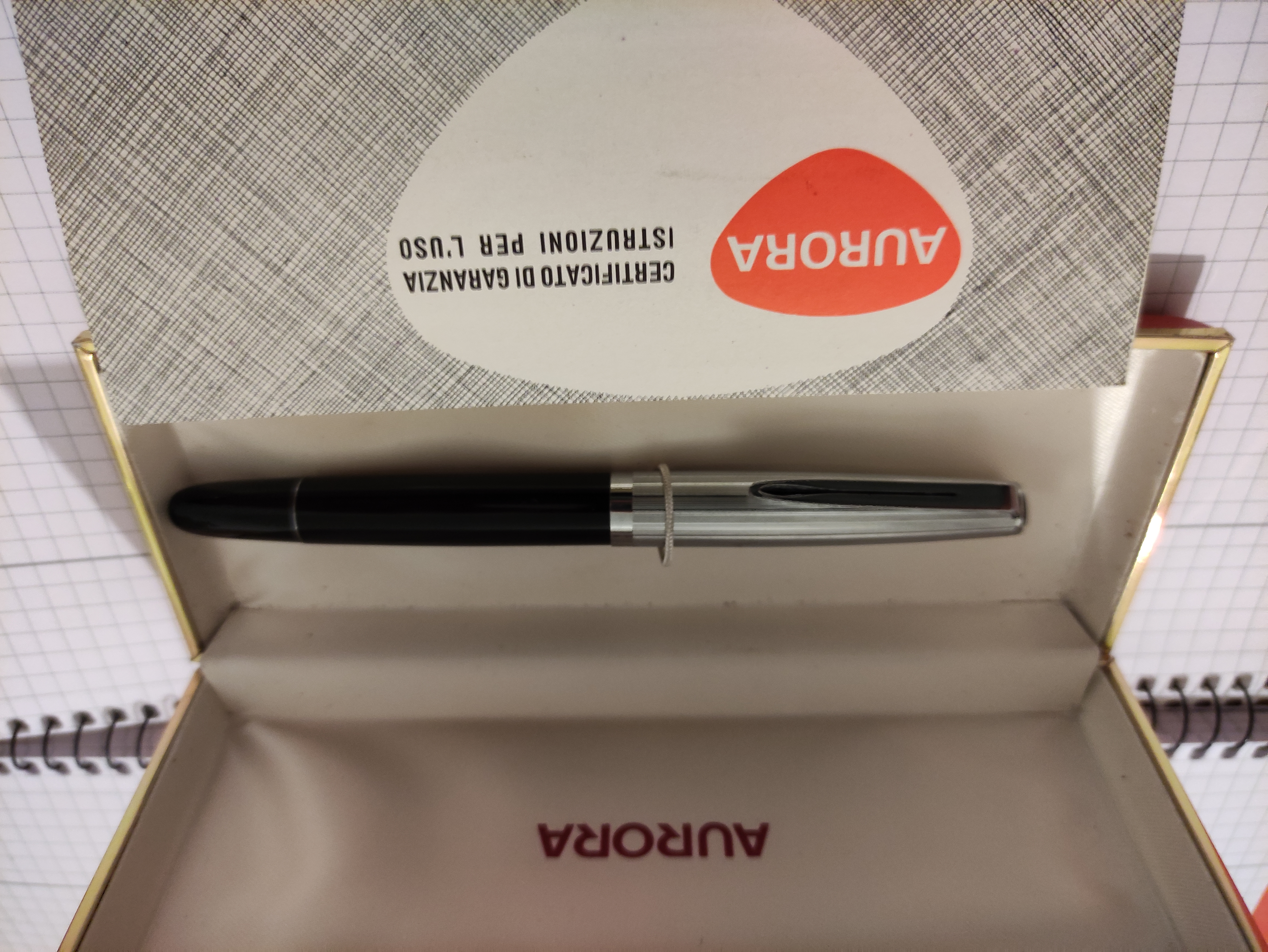 Ricordandomi che Aurora aveva realizzato la serie Archivi Storici sia a cartucce che a pistone, il modello a pistone dovrebbe essere 022, però mi sembrava che sia il cappuccio che il corpo erano statinati. Alla fine ho preso la penna per curiosità.