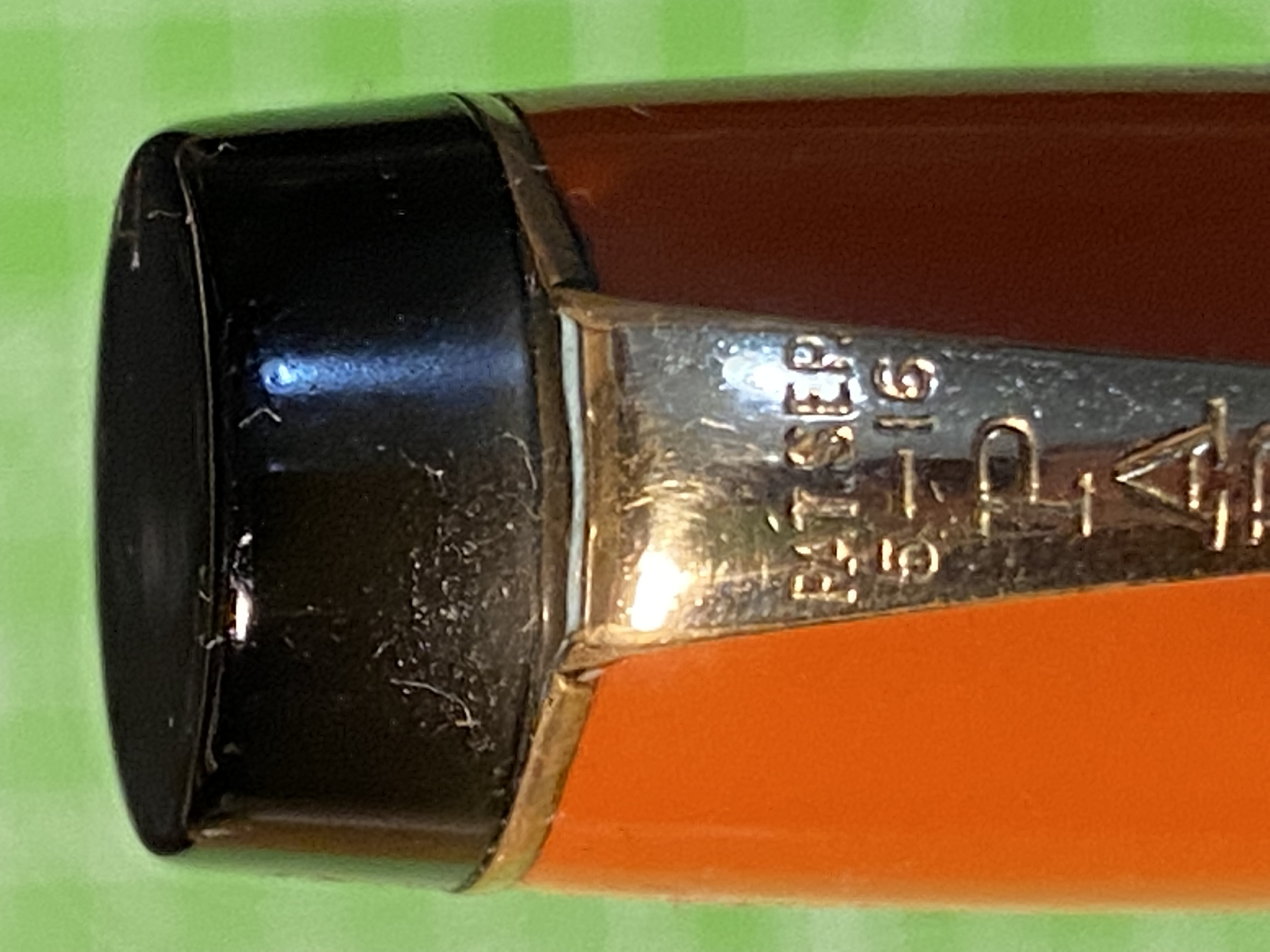 Vedendo le estremità affusolate che terminano a fondo piatto possiamo subito stabilire che è un modello Streamlined, quindi prodotto a partire dal 1929 nella celluloide che per la Parker prendeva il nome di fantasia di “permanite”
