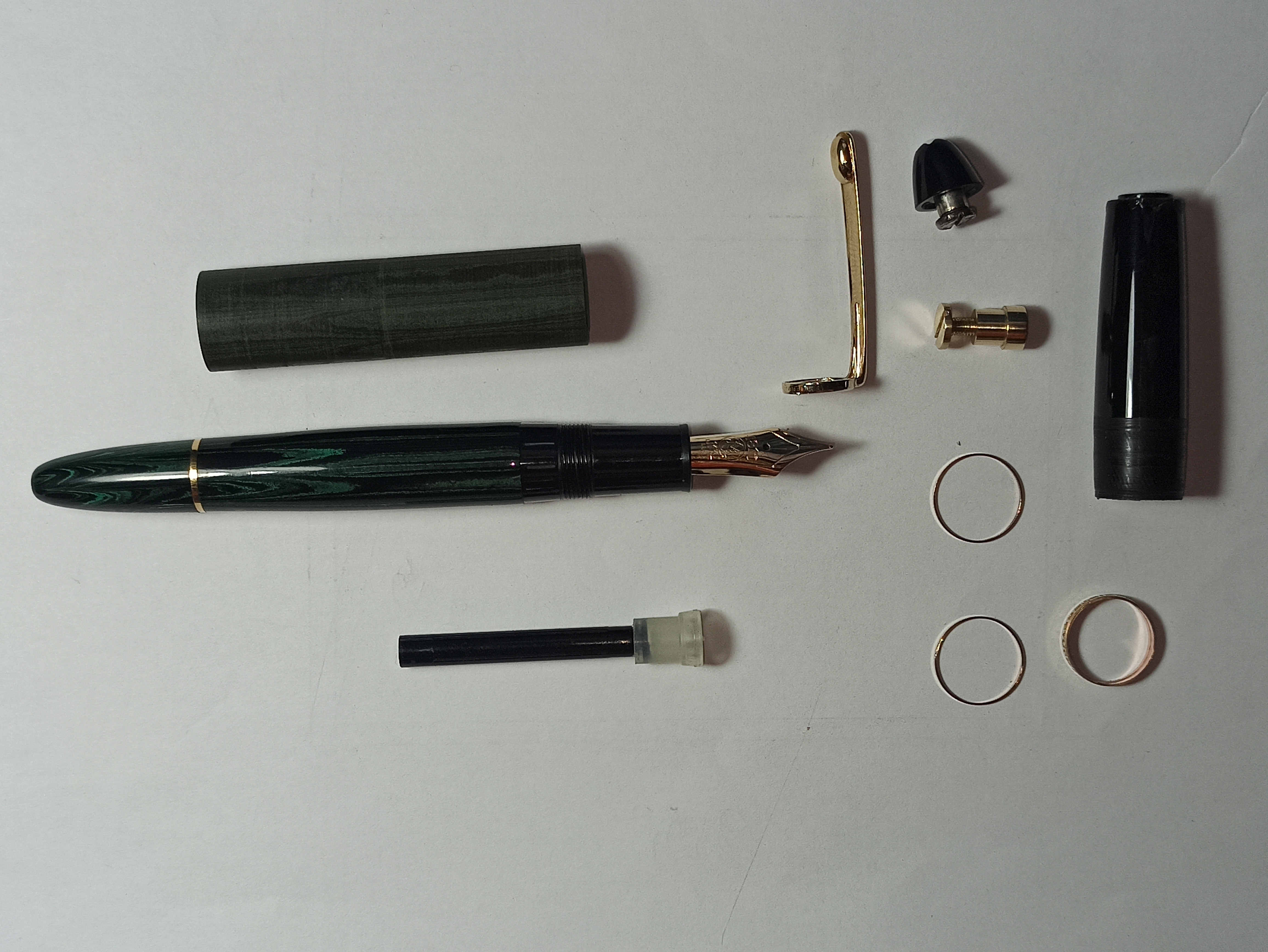 giorgiogreco ha scritto: mercoledì 20 aprile 2022, 17:53 Una MB verde striata in ebanite a fase di costruzione,annelli clip gruppo pennino e pistone originali .Spero di finirla fino al penshow di Firenze ,si ci saro anch'io :D