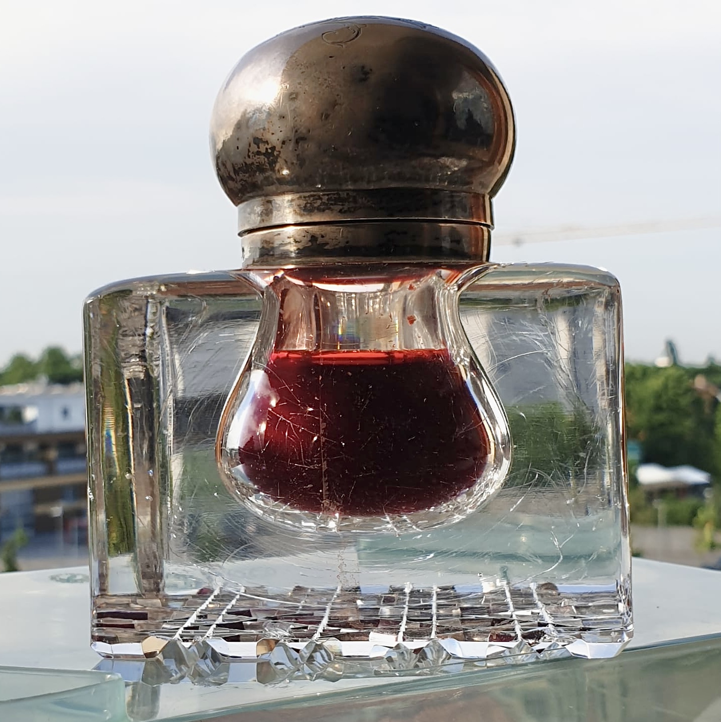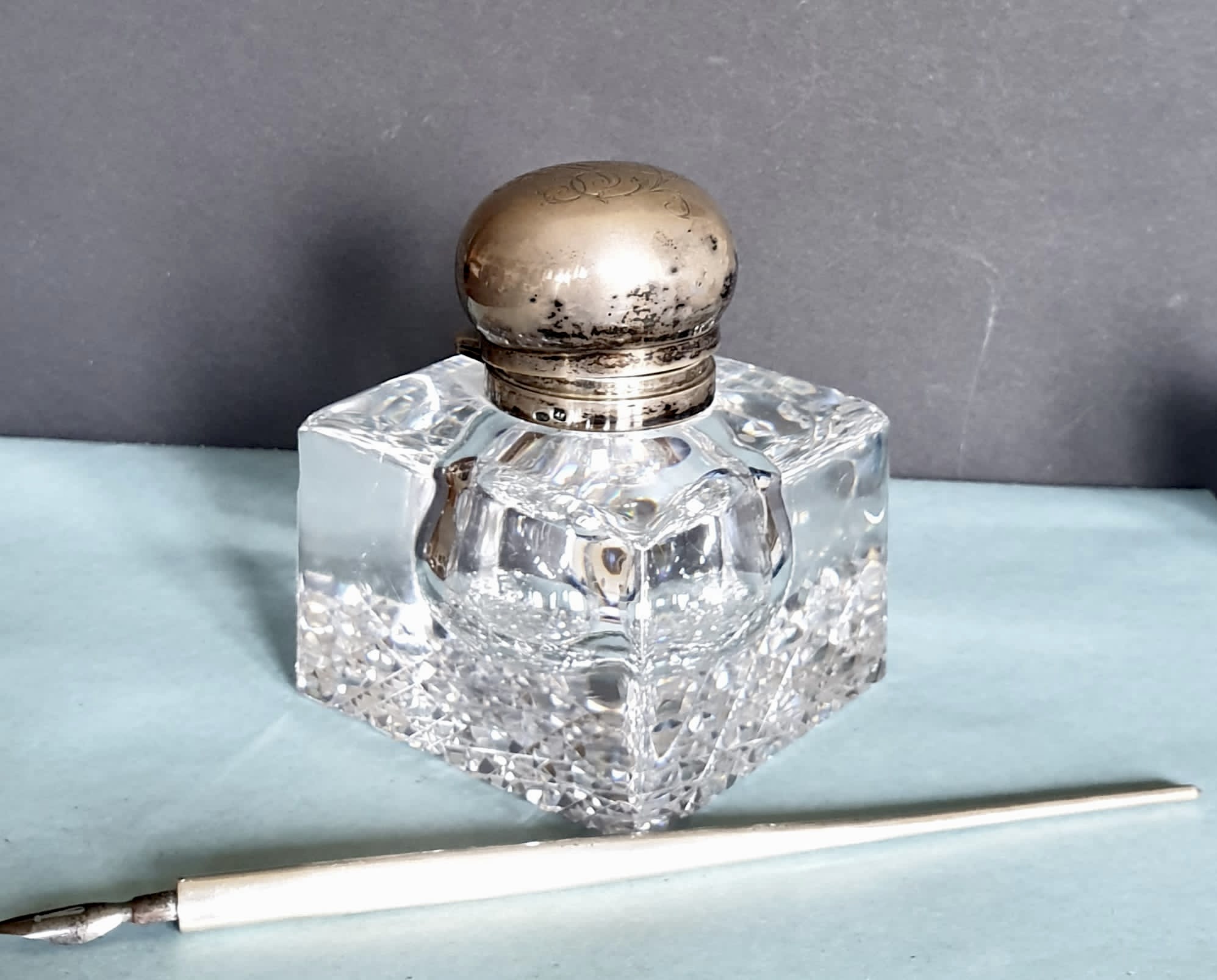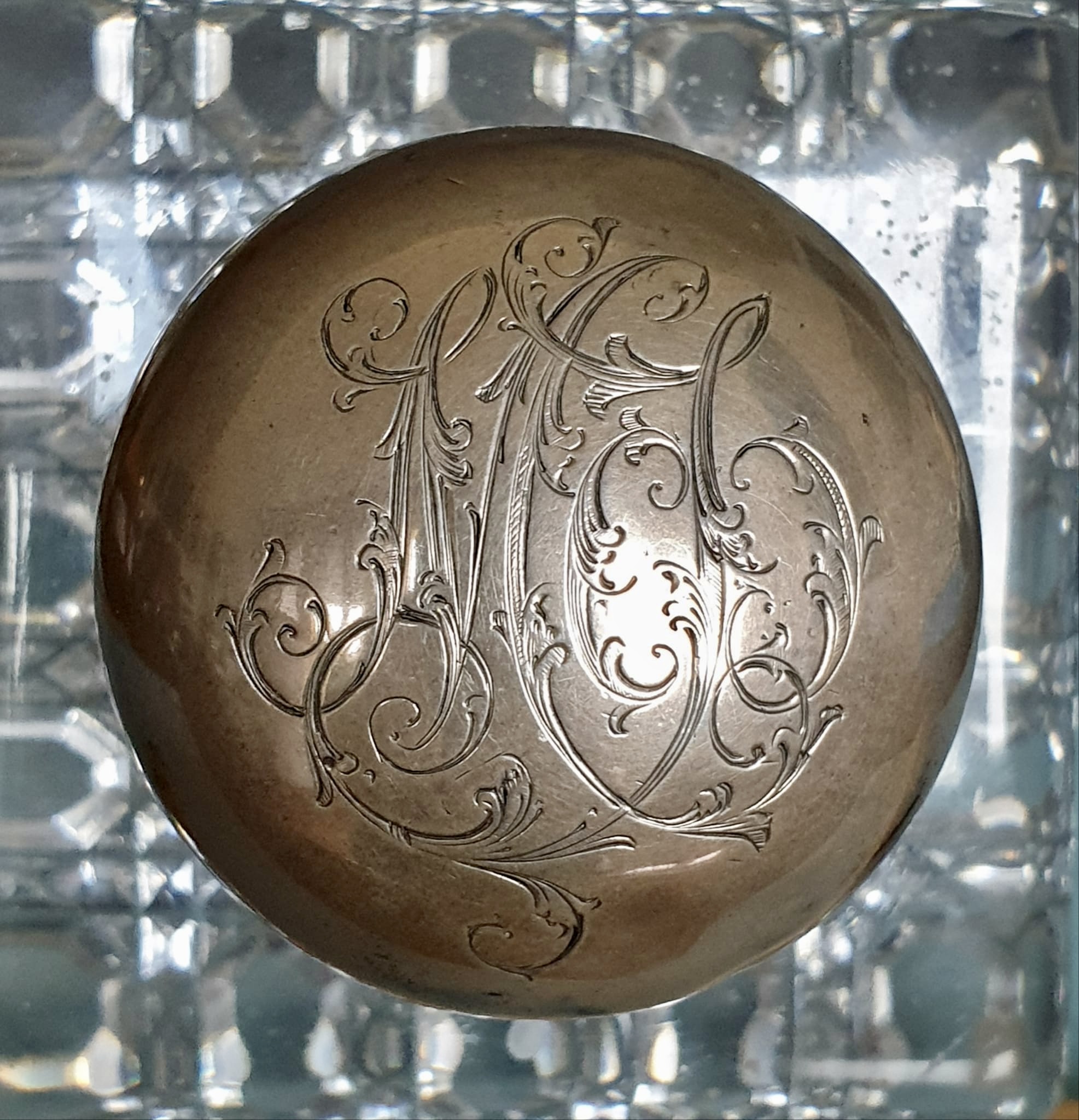 Calamaio in cristallo e argento, Russia 1880, con bel monogramma cesellato.
