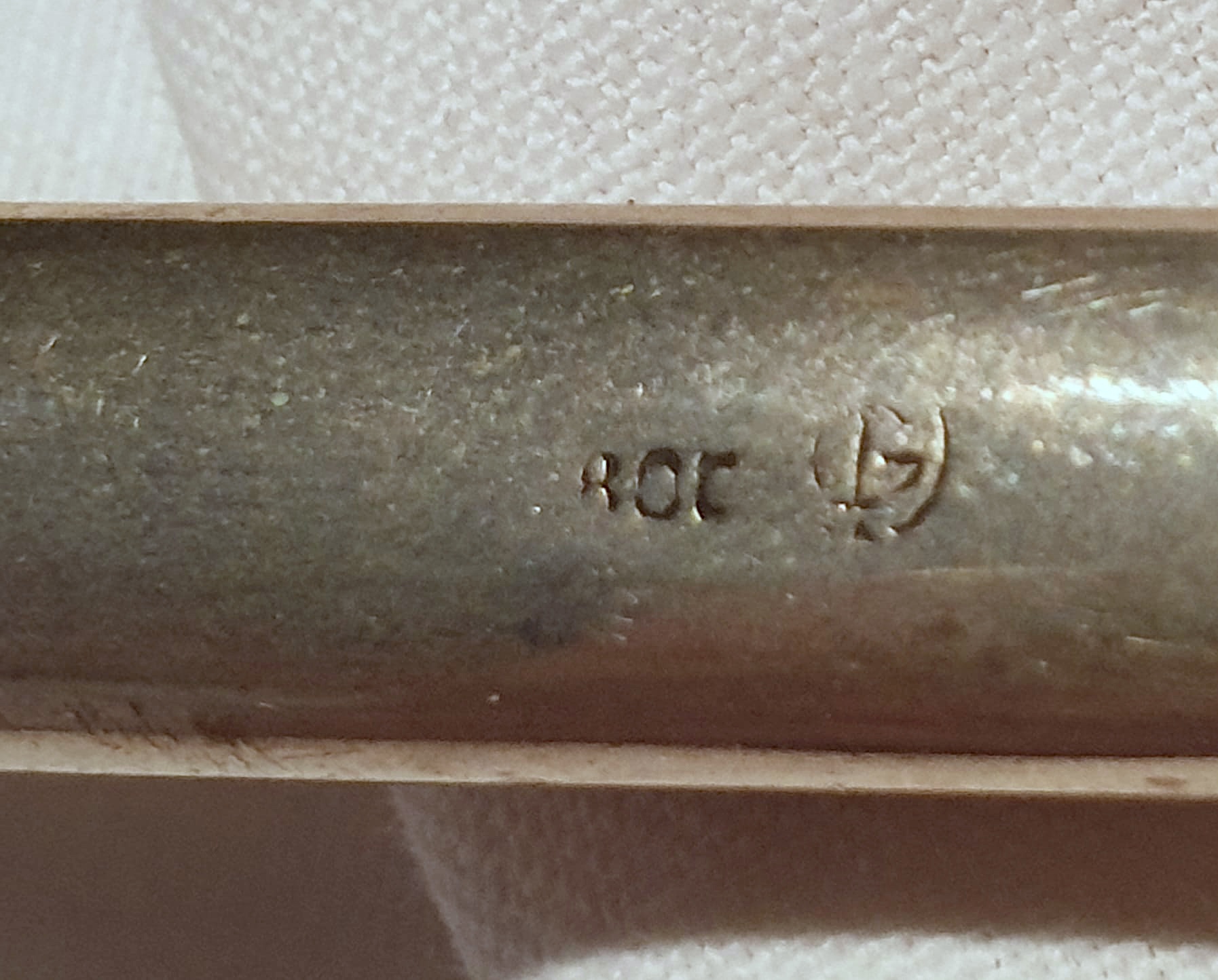 La cannuccia è in argento ma non riconosco quel marchio. Il pennino è un milanese “Cobaltea N.78”.