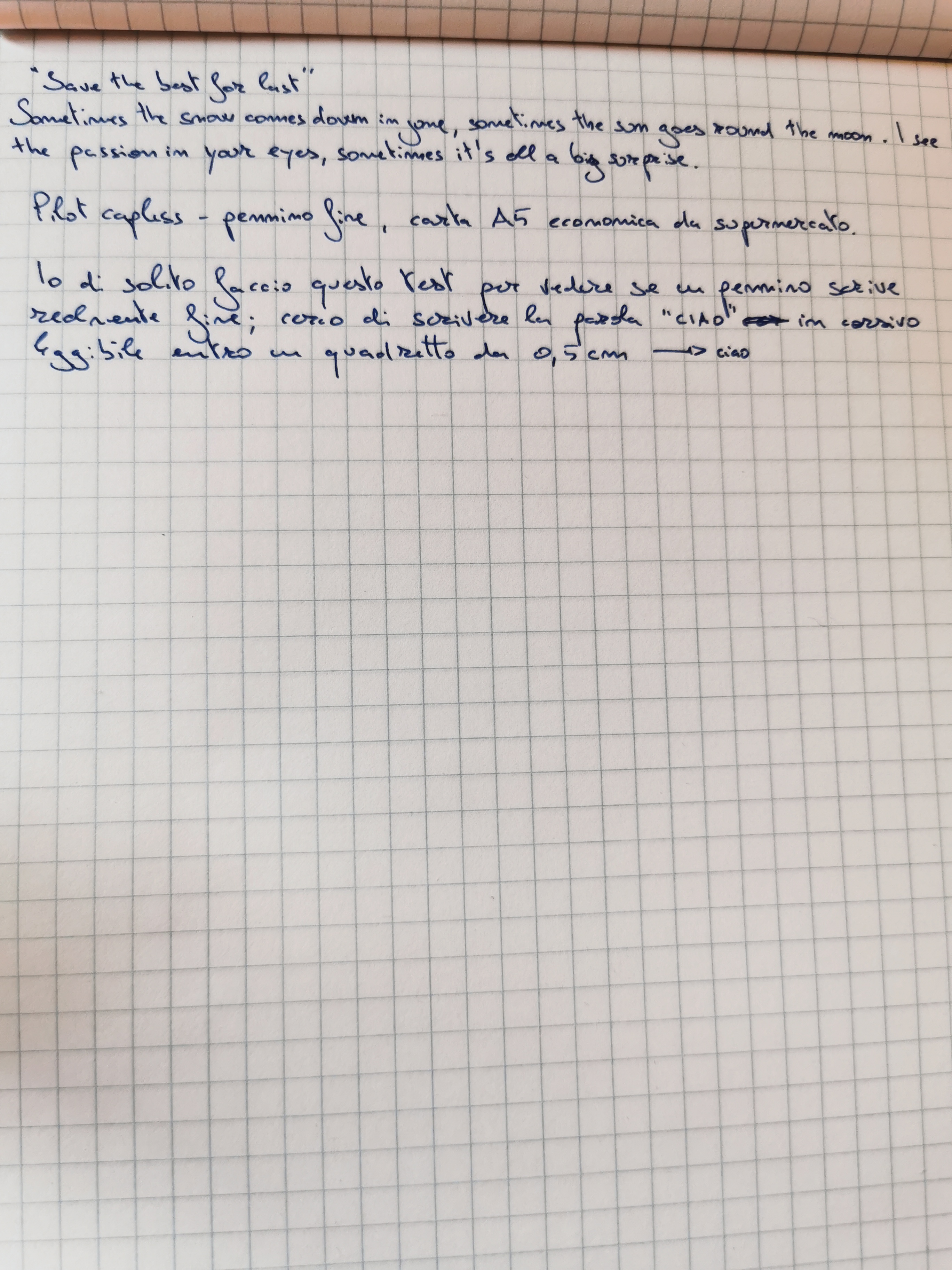 Interessante come spunto, anche se non sono un amante dei pennini Fine ed ExtraFine, seguo con interesse le proveSilvia1974 ha scritto: ↑domenica 26 giugno 2022, 17:26 Buongiorno a tutti, se vi va condividiamo prove di scrittura piccolina fine-fine, per amanti del genere? Può essere un utile confronto tra penne & pennini di marche diverse, per gli utenti che dovessero trovarsi a scegliere una nuova penna. Comincio io con una Leonardo Momento Magico con pennino acciaio EF. Impressione personale: molto positiva! Farò poi una prova con Sailor per un primo confronto pratico. Intanto ecco la Leonardo MM:
