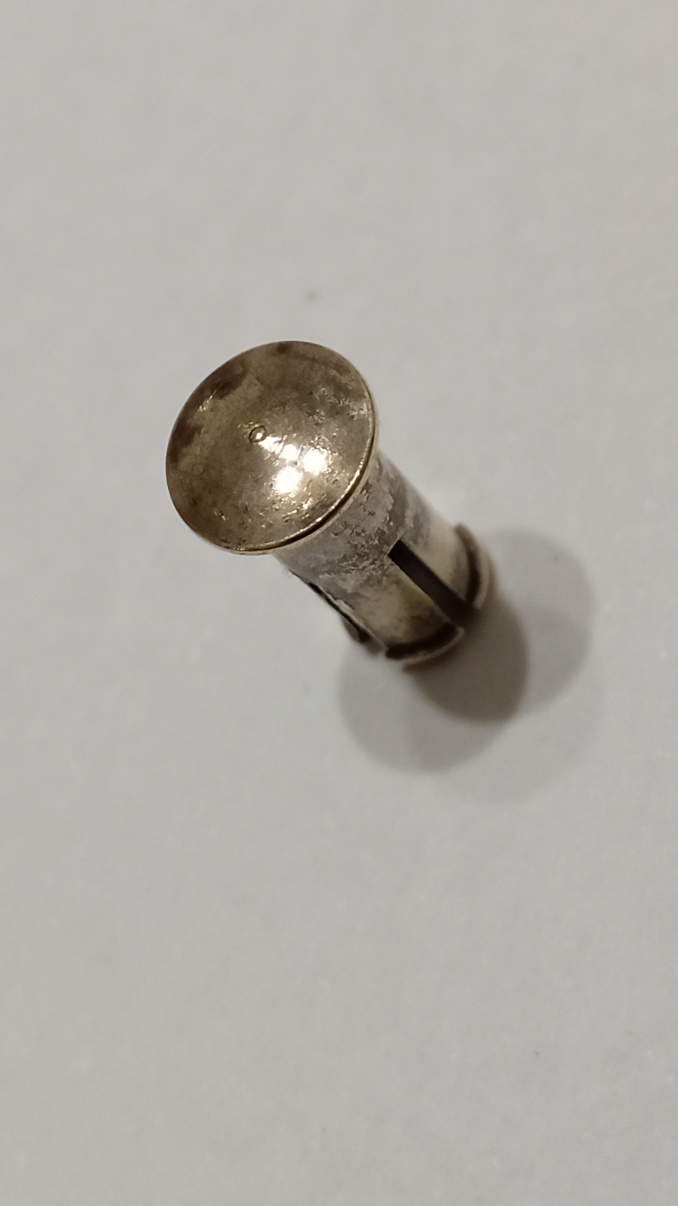The button filling was completely rusted, and the internal strip all deformed and twisted, so it had to be disassembled to straighten it, and the button had to be subjected to intense polishing to achieve its original finish...