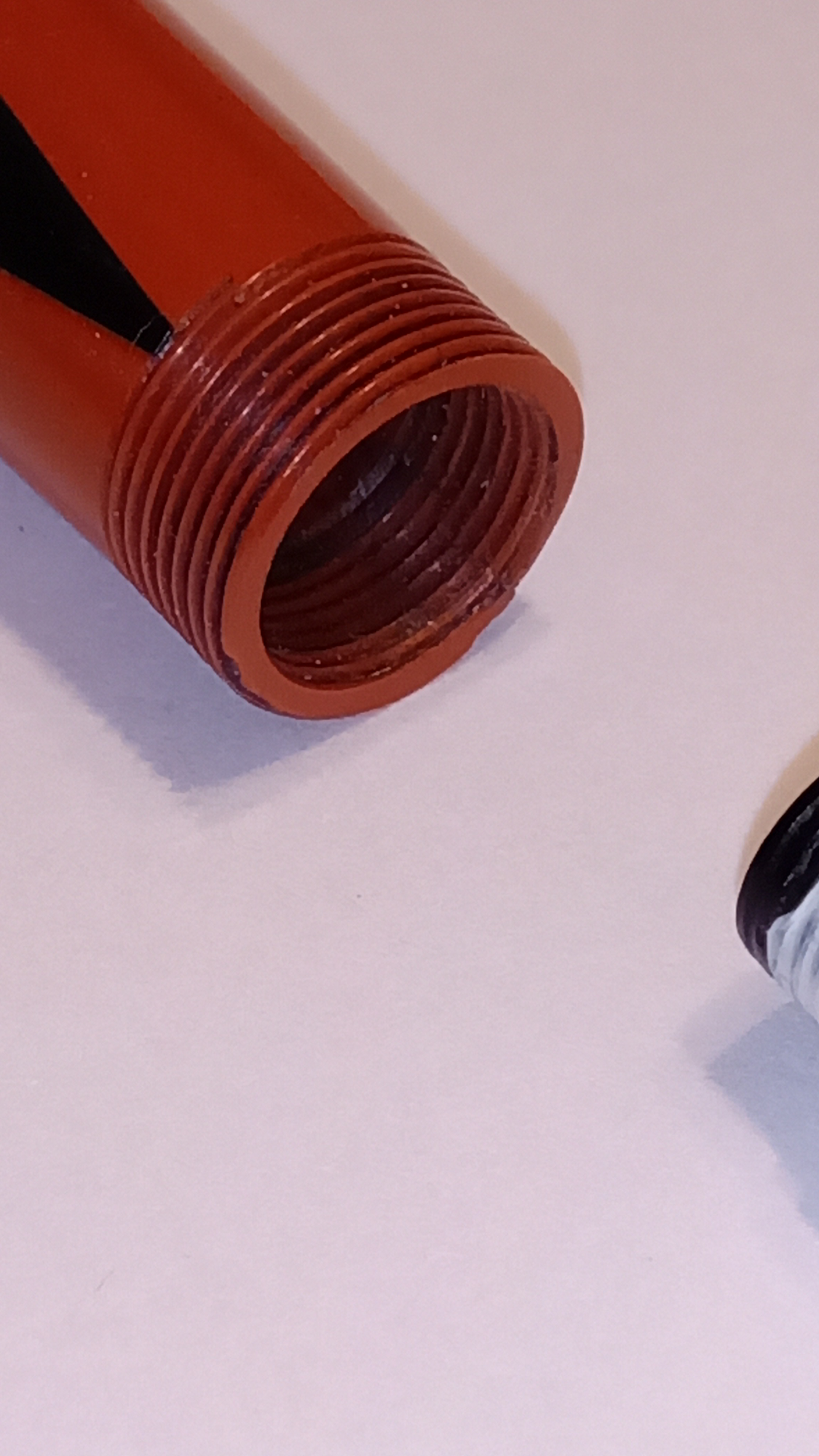 In order not to lose and respect these threads, in the case of the internal thread, I used the thread of the same grip as an internal mold, carefully protected with Teflon tape, which after gently placing a drop of cyanoacrylate on the internal threaded part of the barrel, I quickly screwed on the grip...