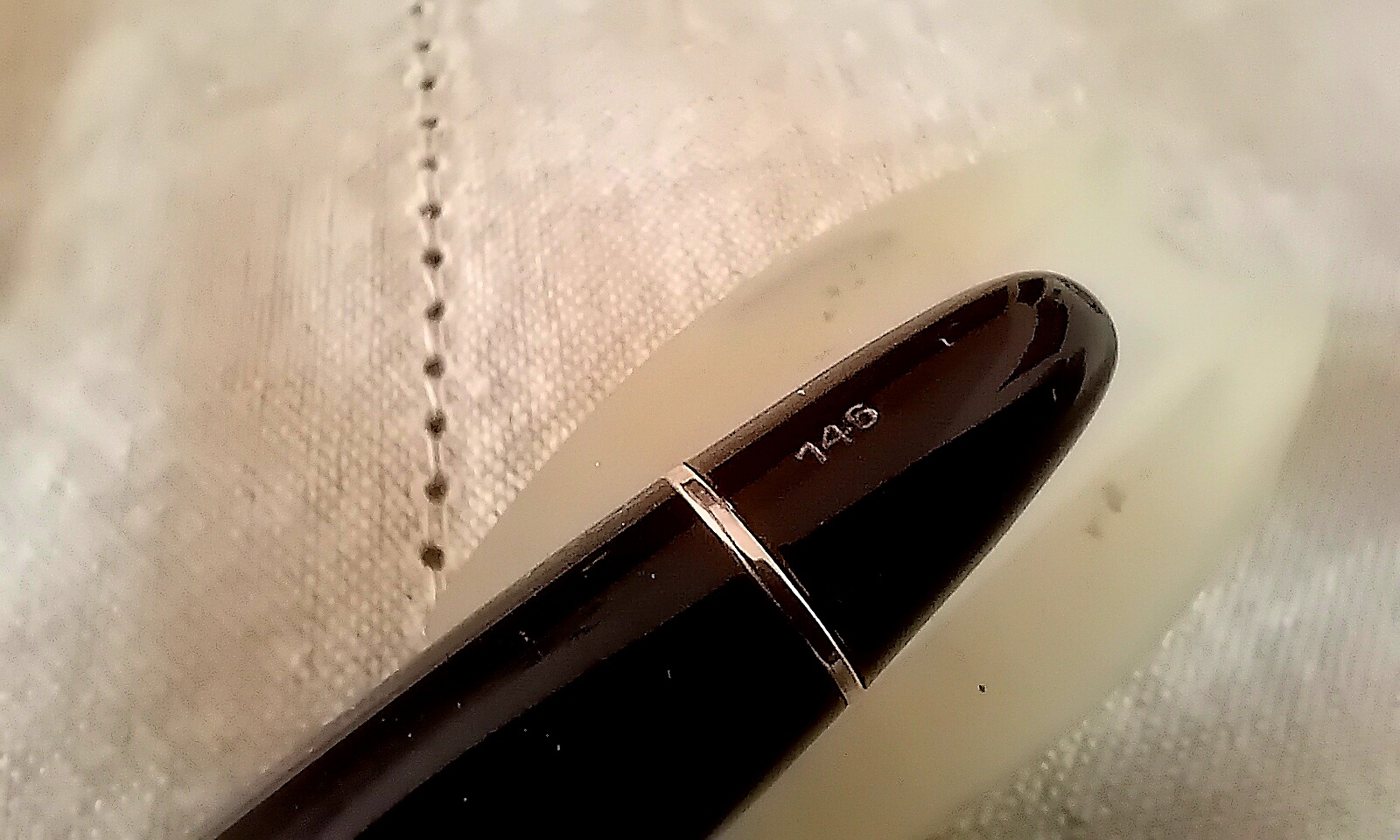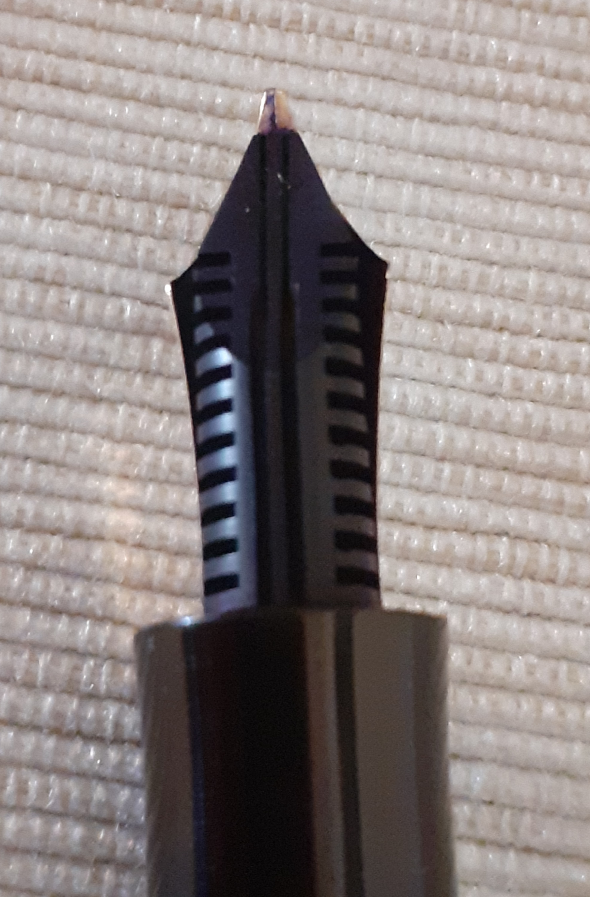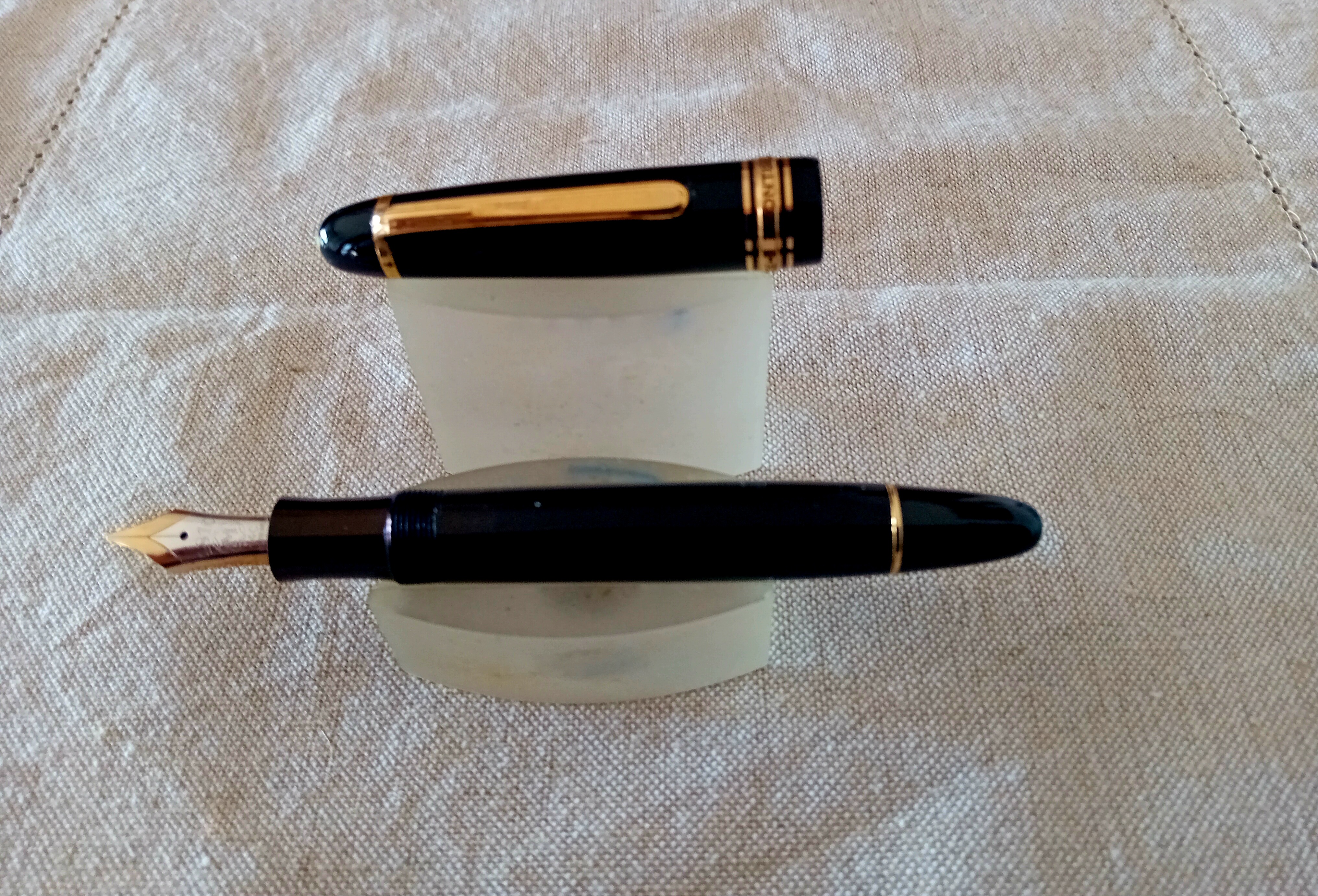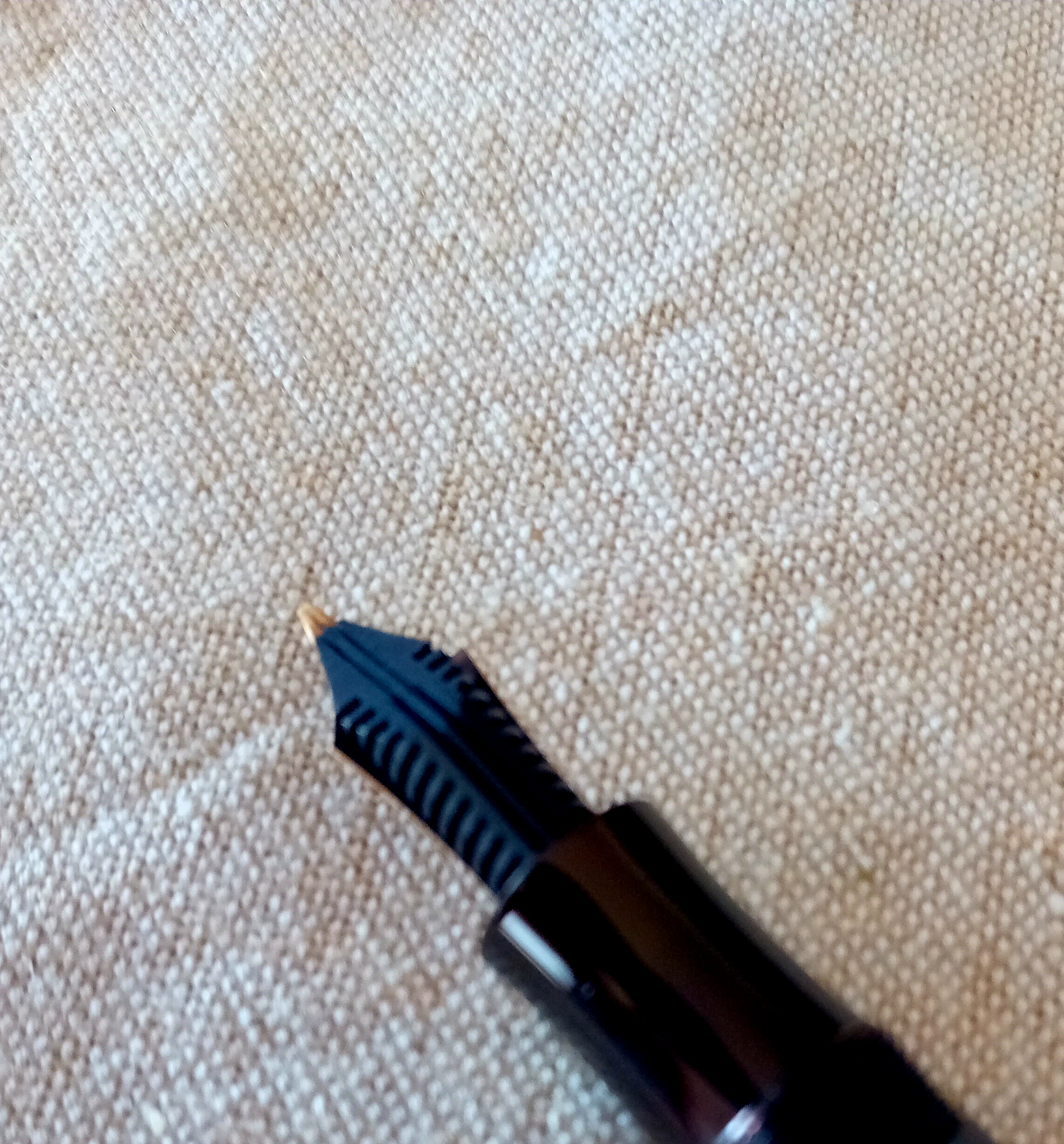 Anche questa proviene dall'ultimo penshow di Bologna. Ovviamente in celluloide e con pistone telescopico, il pennino è un EF, il simbolo riportato dopo sul fondello dovrebbe indicare calligrafico, o almeno è quanto sono riuscito a trovare in rete.