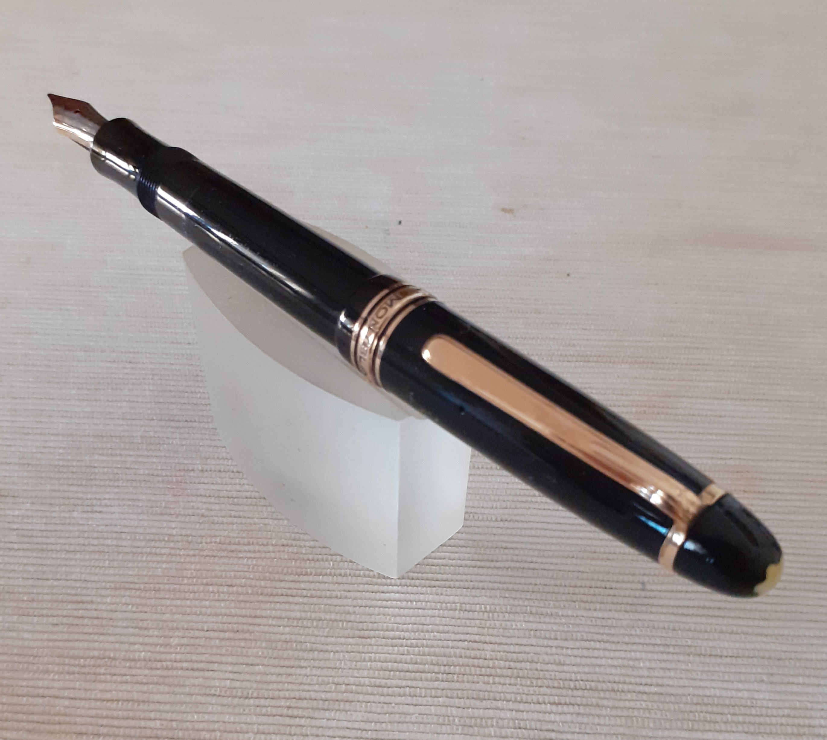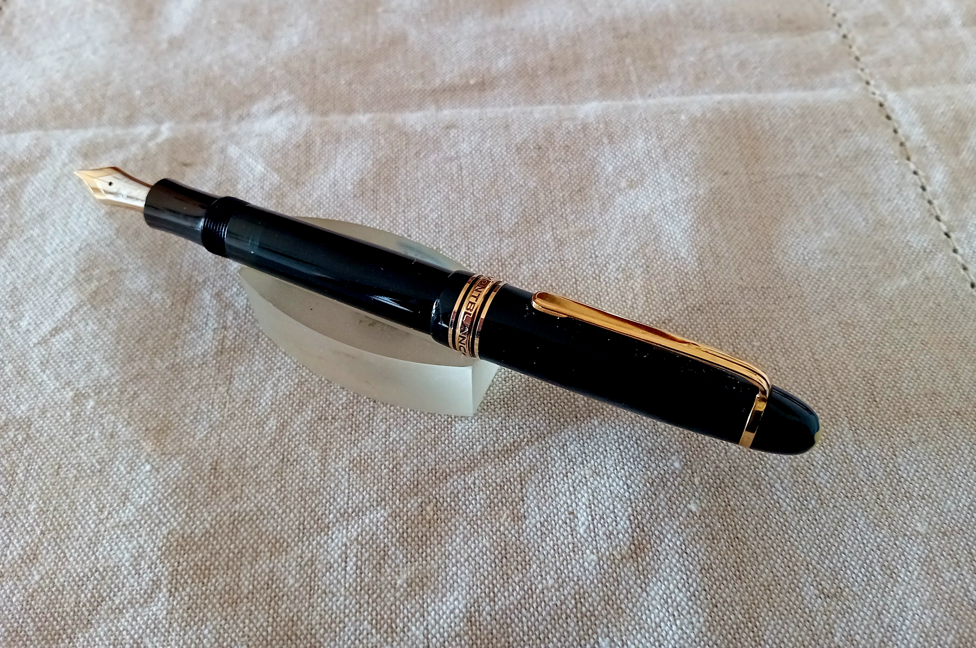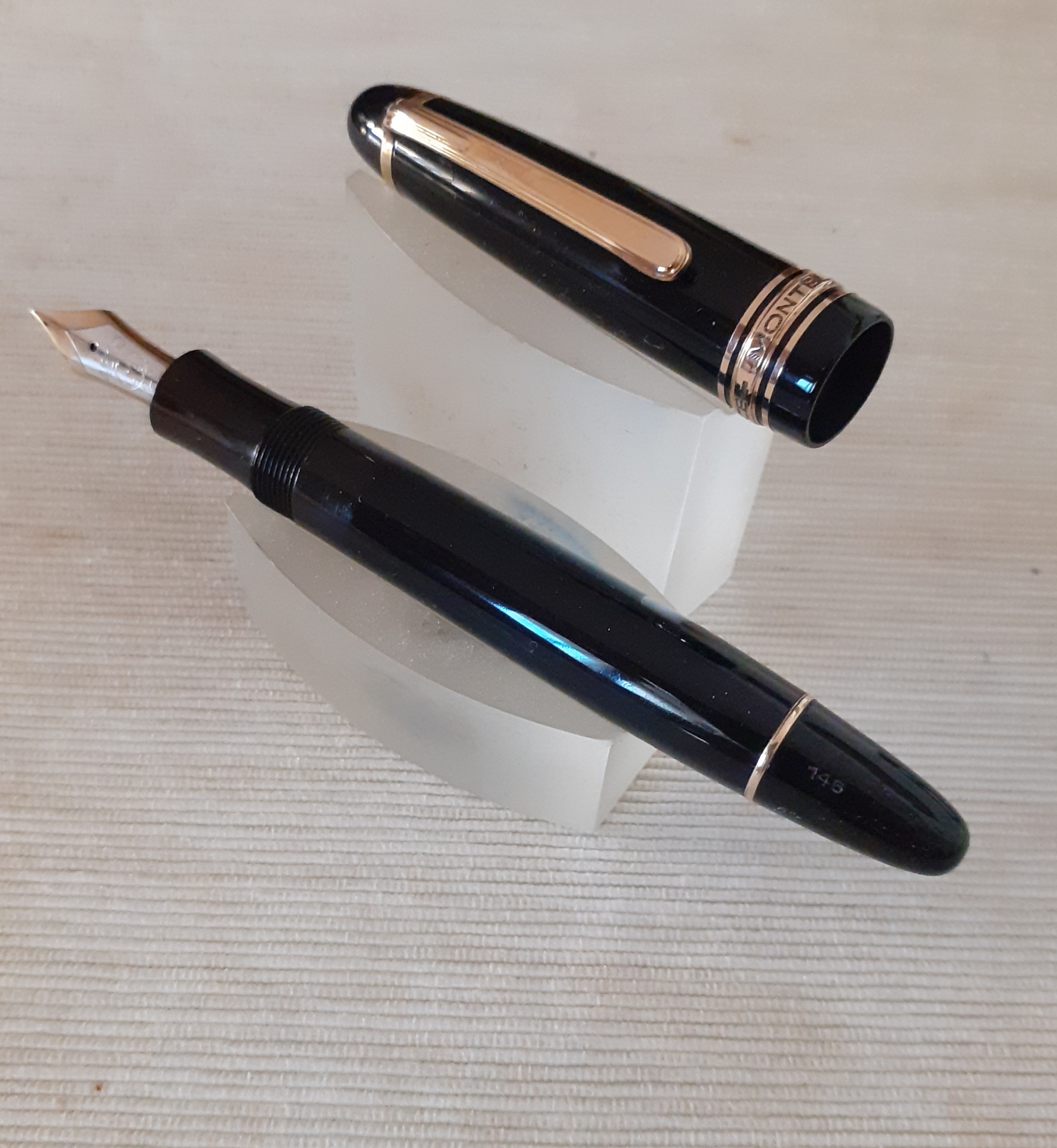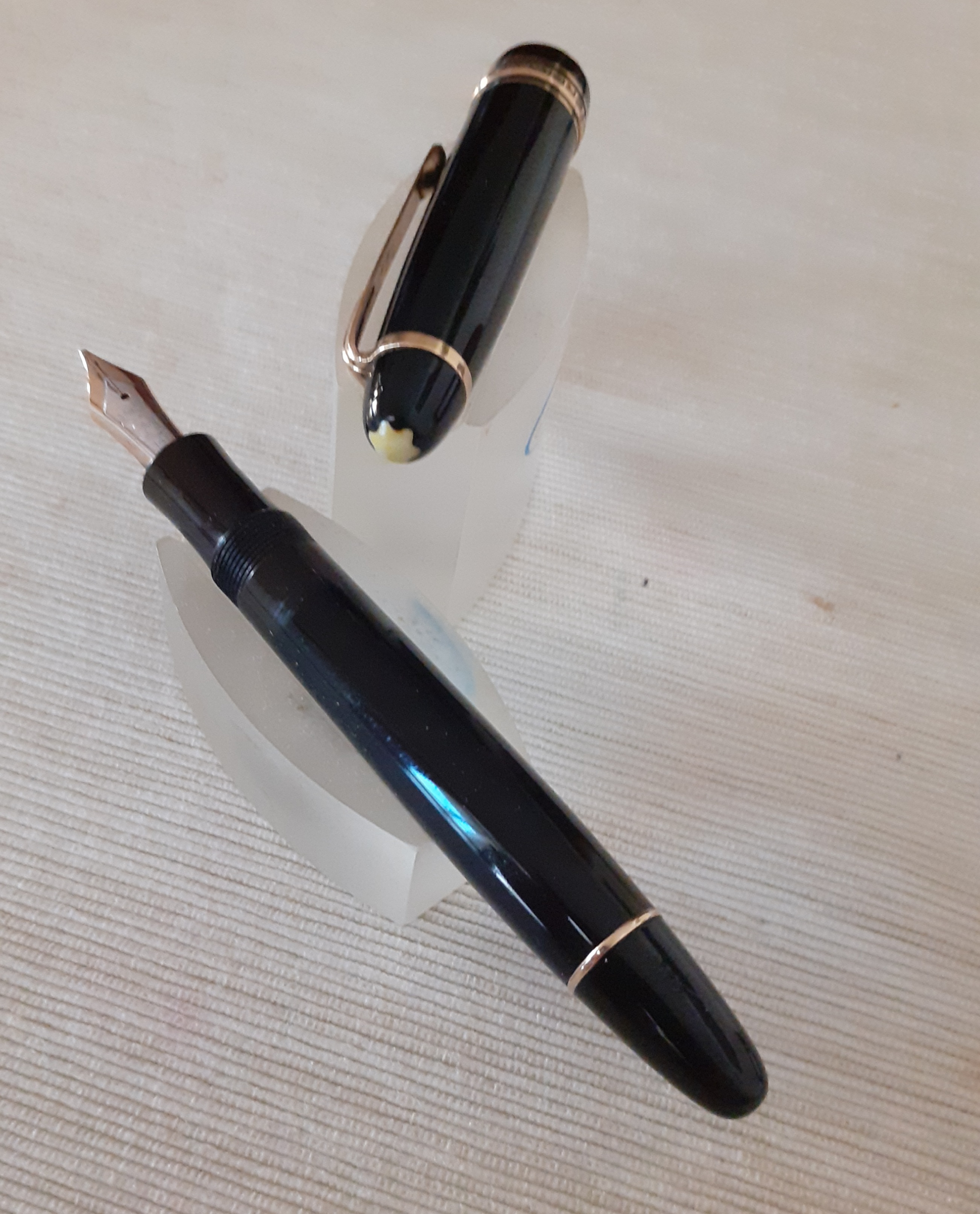 Anche questa proviene dall'ultimo penshow di Bologna. Ovviamente in celluloide e con pistone telescopico, il pennino è un EF, il simbolo riportato dopo sul fondello dovrebbe indicare calligrafico, o almeno è quanto sono riuscito a trovare in rete.