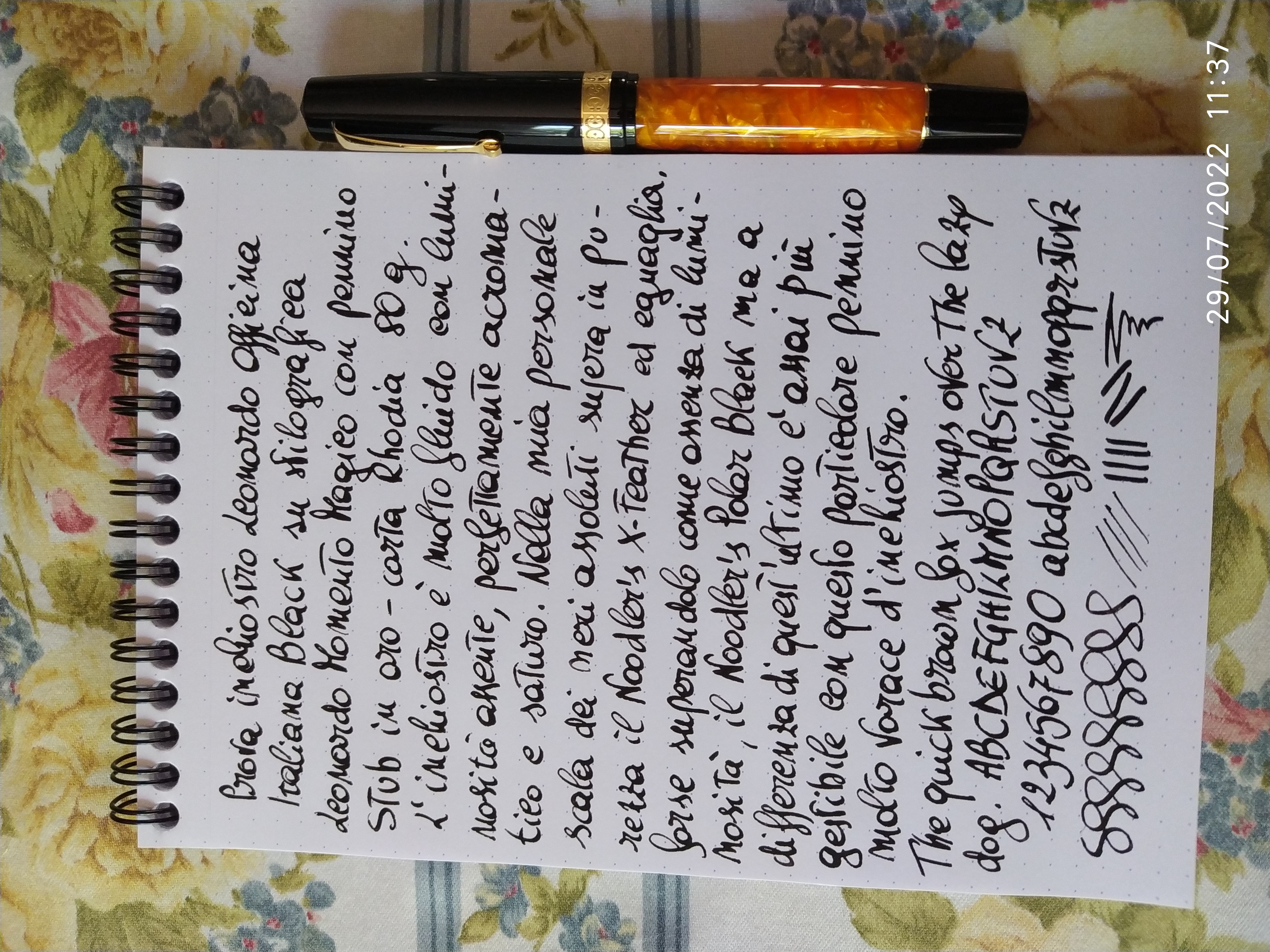 Ho diversi inchiostri Leonardo, sono begli inchiostri, ma il nero emerge ed e' diventato di fatto il mio nero di riferimento.
