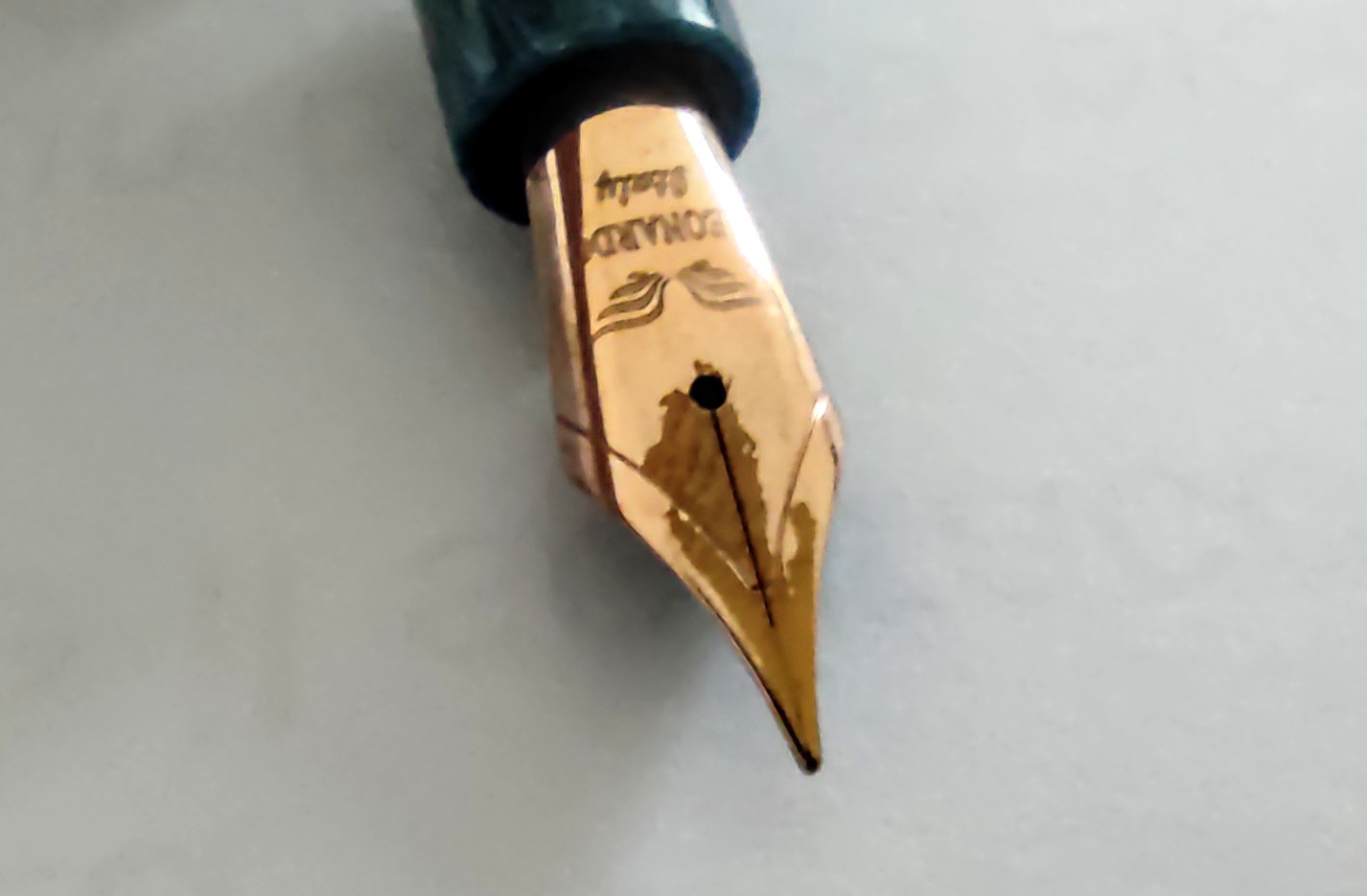 La penna da quando l'ho acquistata, circa gennaio, è sempre stata inchiostrata esclusivamente con Diamine Oxford Blue. Magari c'è qualcosa nella formulazione dell'inchiostro che non va d'accordo con l'oro rosa?