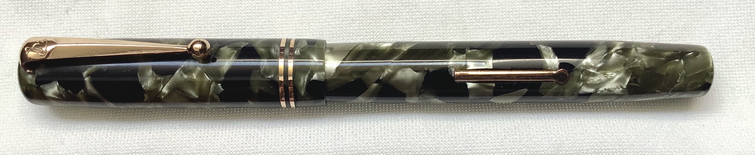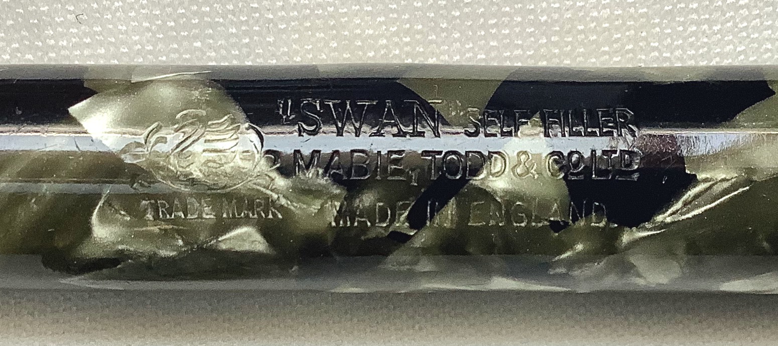 Alla fine comunque se ne viene fuori, magari impiegandoci più tempo del necessario : la penna è una bella Swan Self Filler 6241 , in celluloide marmorizzata verde ottimamente conservata.