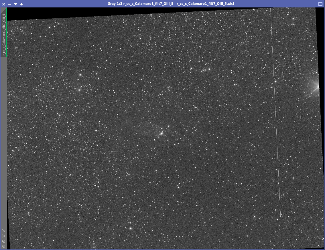 Dobbiamo iniziare con il calibrare le immagini ottenute dalla sessione (o da sessioni multiple) notturna. Successivamente queste dovranno essere allineate (puntando a occhio è facile sbagliarsi di qualche pixel nell'inquadratura) e integrate. Per far capire l'importanza di questa parte userò come esempio le immagini della nebulosa Calamaro riprese durante la scorsa settimana in Toscana in 3 notti consecutive (totale 21h di riprese)
