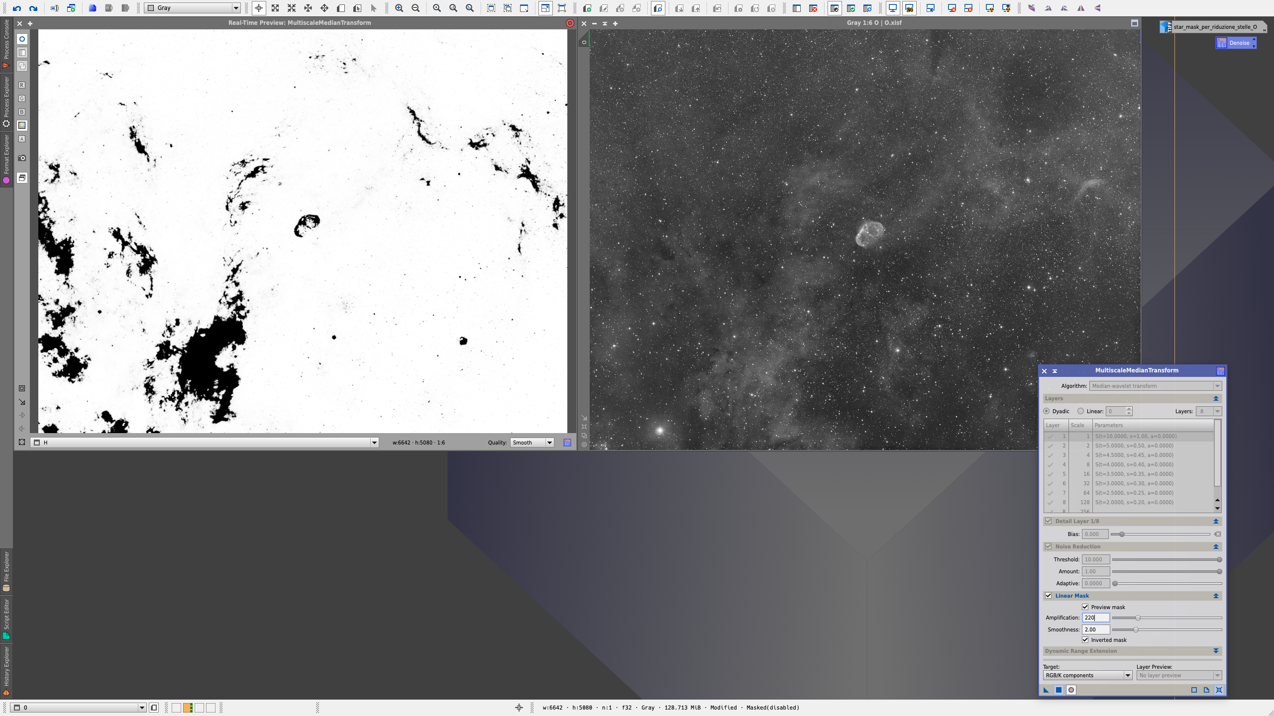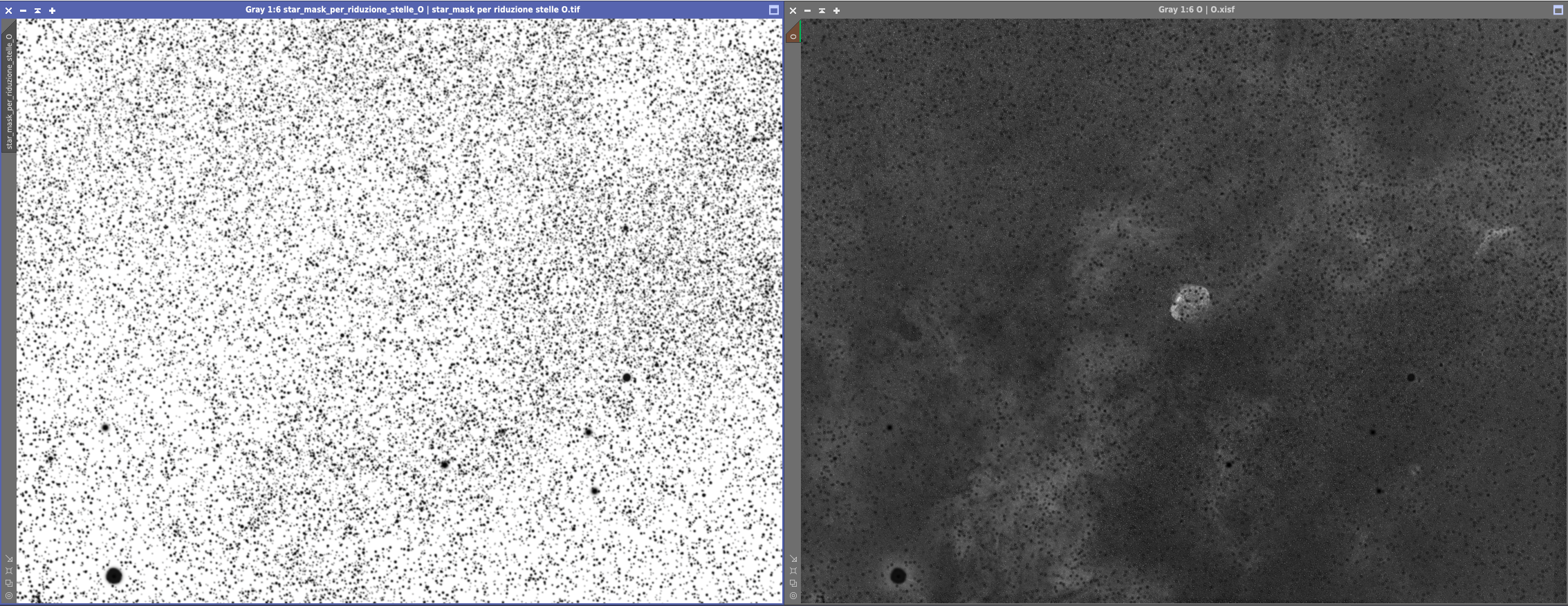 La prima cosa da fare è una maschera per applicare l'operazione solo alle stelle e non a tutta l'immagine. Con StarMask si ottiene questo.