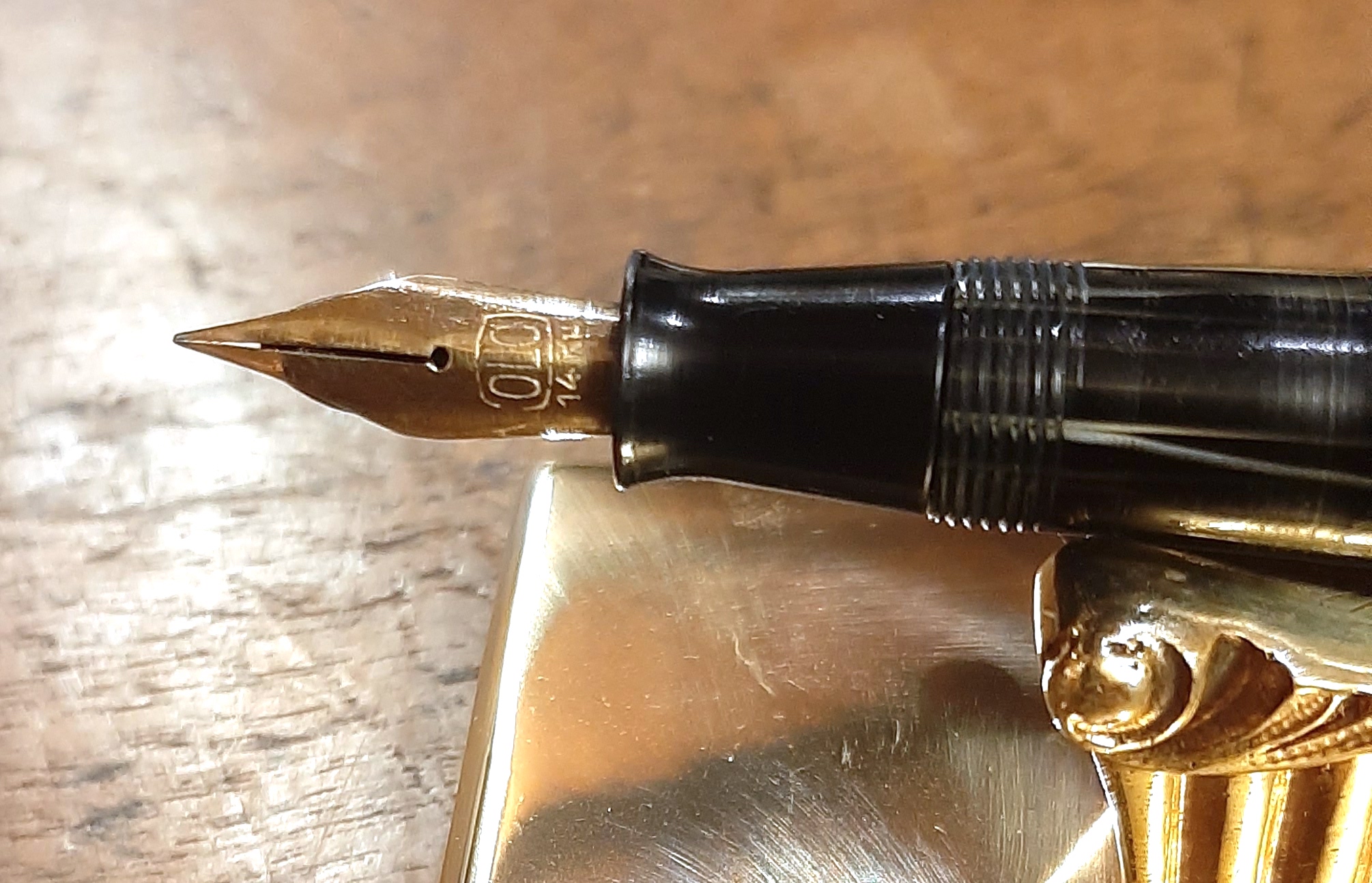 Buongiorno a tutti, ho questa penna in una celluloide favolosa con un pennino Olo che scrive benissimo, la penna non riporta alcuna scritta, parrebbe una "anonima". Mi chiedevo se in base alle vostre esperienze Olo marchiava sempre le proprie stilografiche.