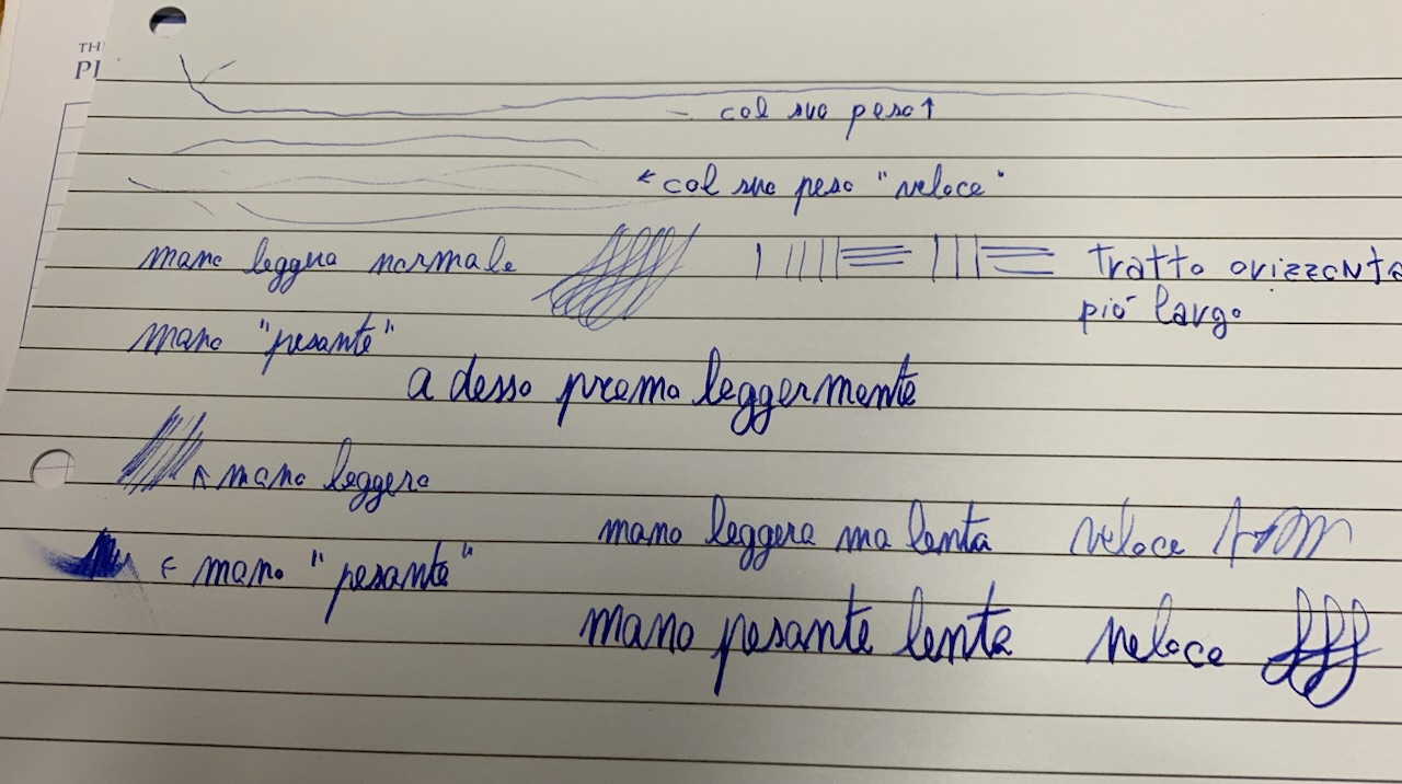 Con mano leggera, scrivendo velocemente il flusso è molto scarso e il tratto sottilissimo e sbiadito, alcuni salti di tratto
