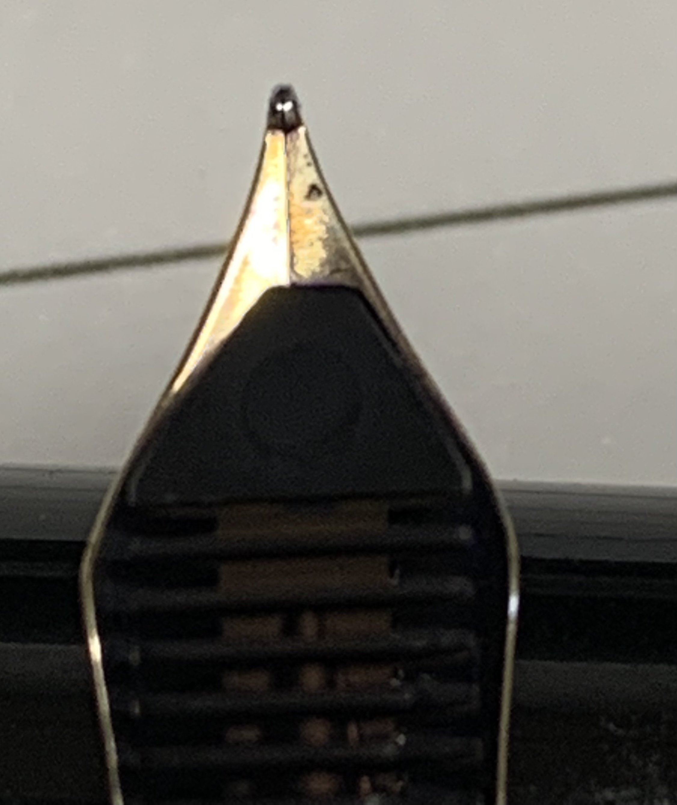 Quello che cercavo di spiegarti è proprio che sui pennini Pelikan vintage l'iridio di solito non è smussato ai lati, è piatto, e quindi visto da davanti ha aspetto rettangolare.