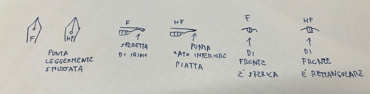 HF è spiegato nella immagine che ho allegato Harte fein, quindi fine duro.mastrogigino ha scritto: ↑domenica 9 ottobre 2022, 15:19Il micromesh l'ho usato solo per una toccatina leggerissima sui bordi esterni del pennino, era talmente affilato che affettava la carta semplicemente passandolo sul foglio col suo peso.sansenri ha scritto: ↑sabato 8 ottobre 2022, 23:13 io invece ti sconsiglio di smontare il conduttore, nei pennini Pelikan l'anello che li tiene insieme è molto stretto, non è facile smontarli né rimontarli.