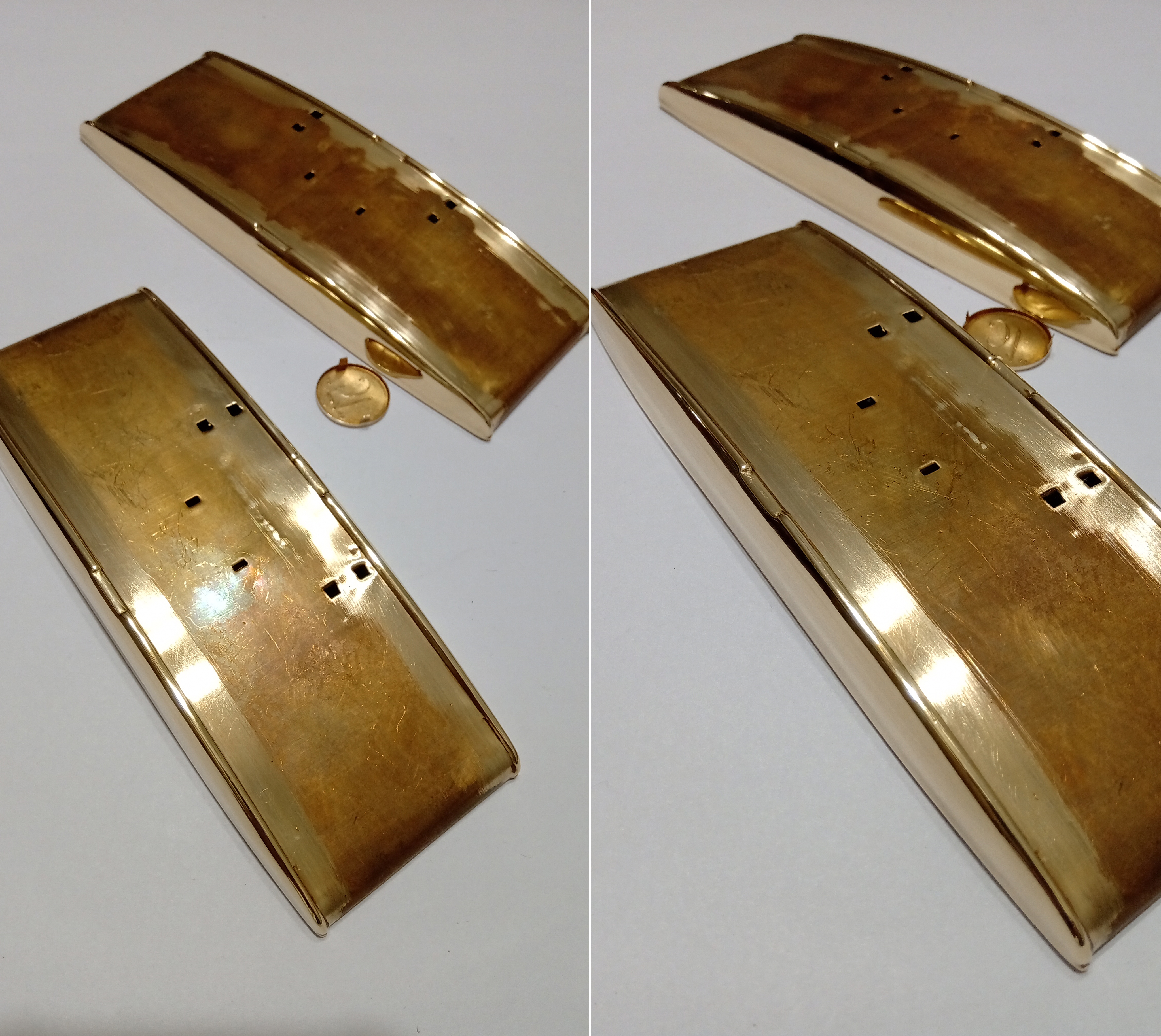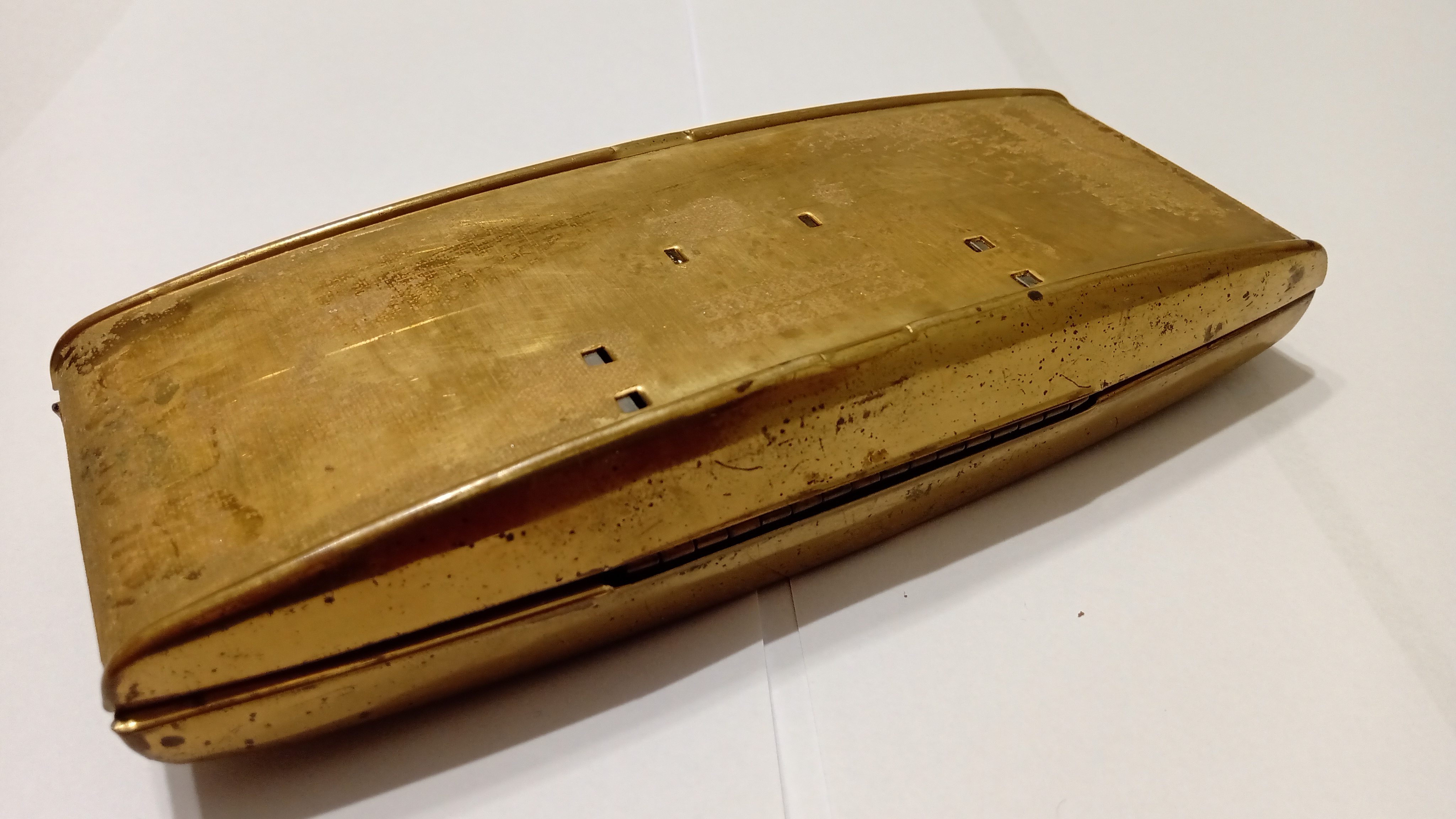 La cassa in ottone era in condizioni tristi, con parti mancanti interne ed esterne e ottone ammaccato e annerito...