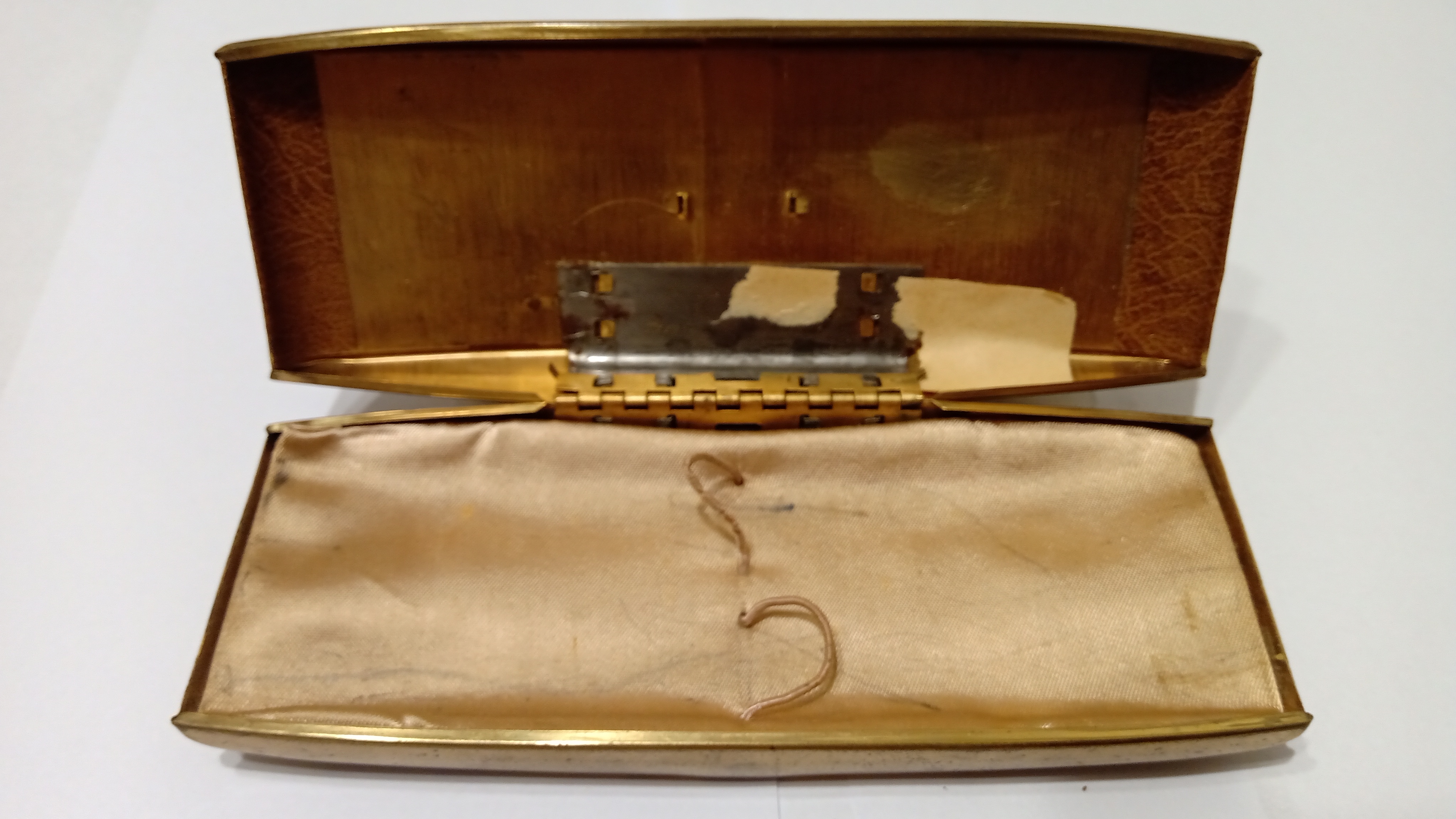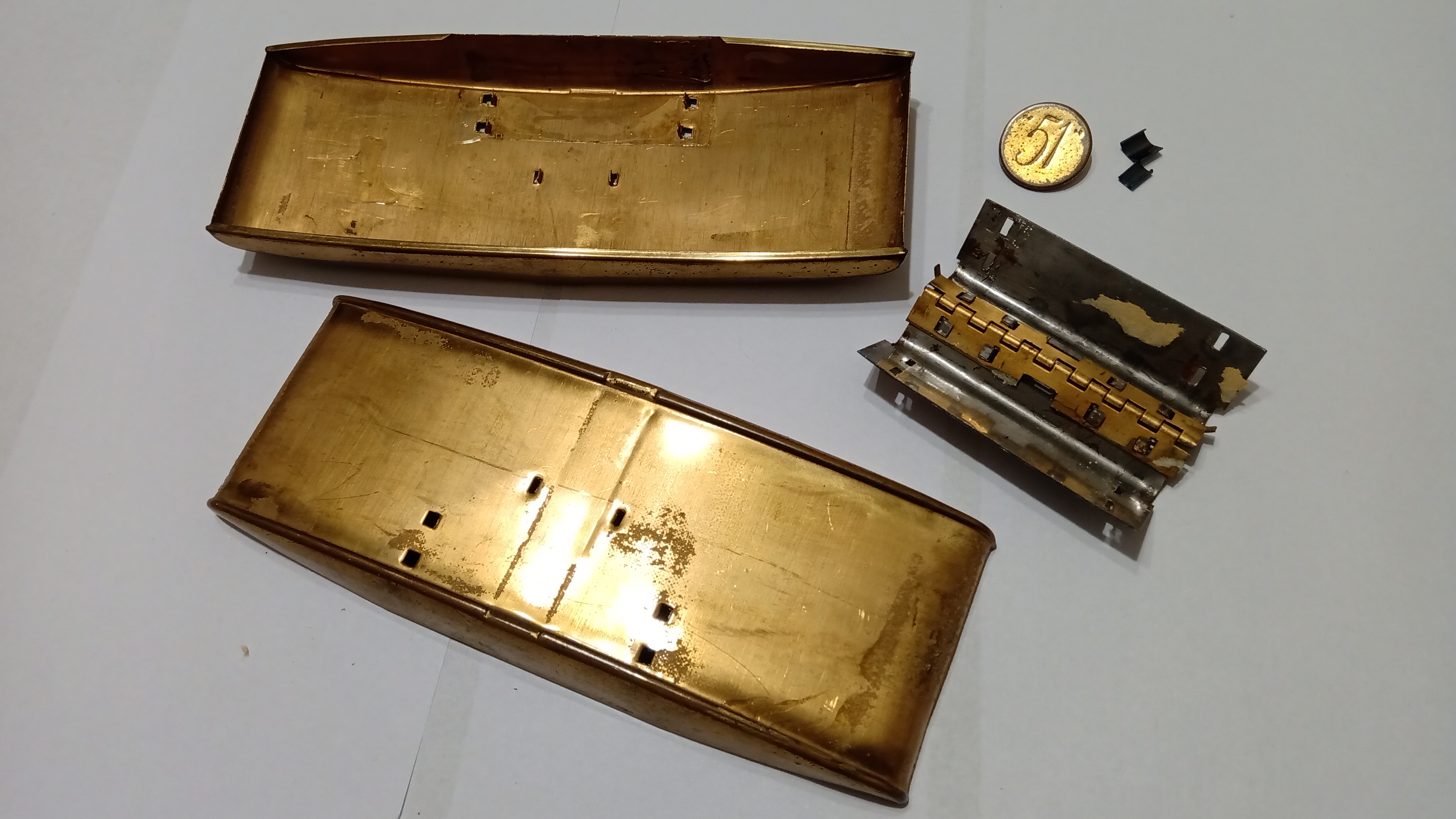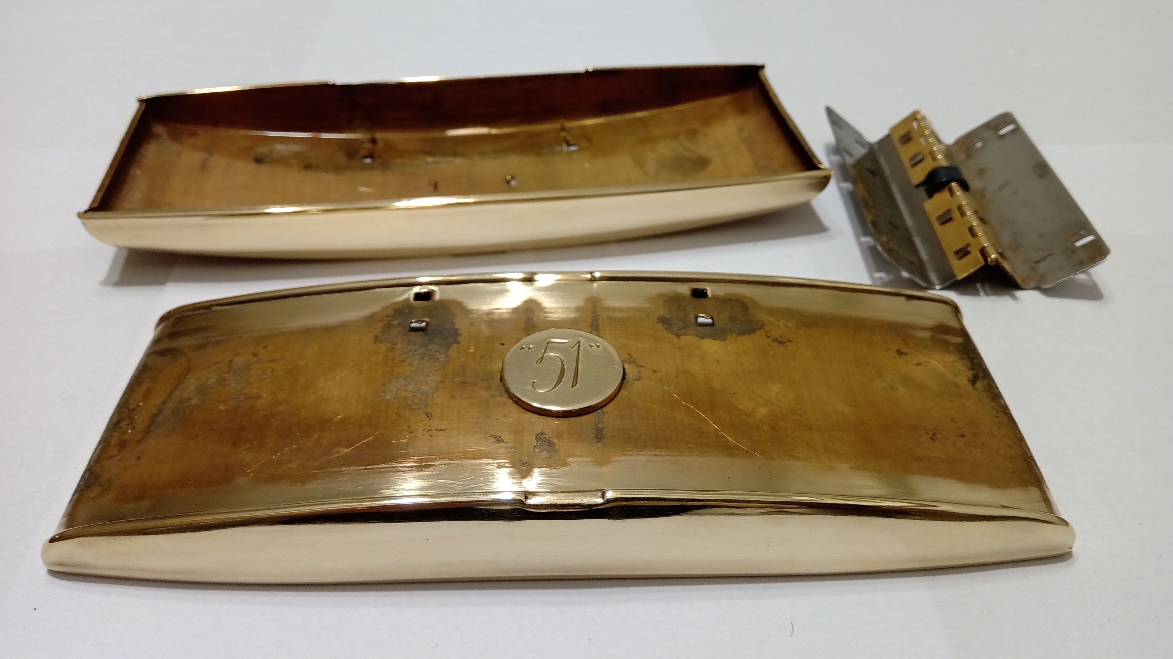 Ora è il momento della scatola in ottone, che è stata completamente smontata, rimuovendo la cerniera, il logo del coperchio e i rivestimenti esterni ed interni che erano deteriorati e macchiati,