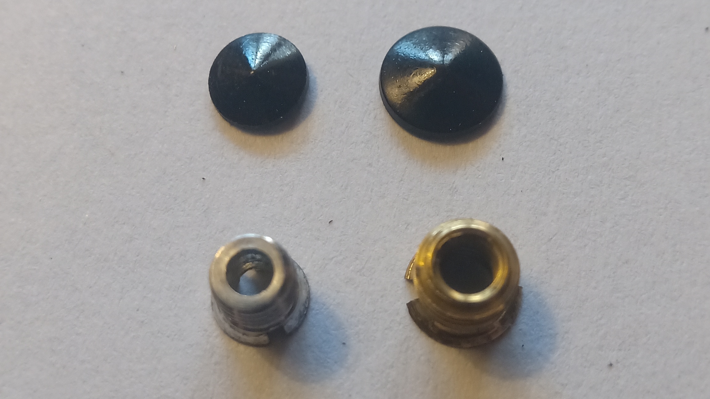 cappucci e fermagli lucidati, e corpi in lucite e celluloide,