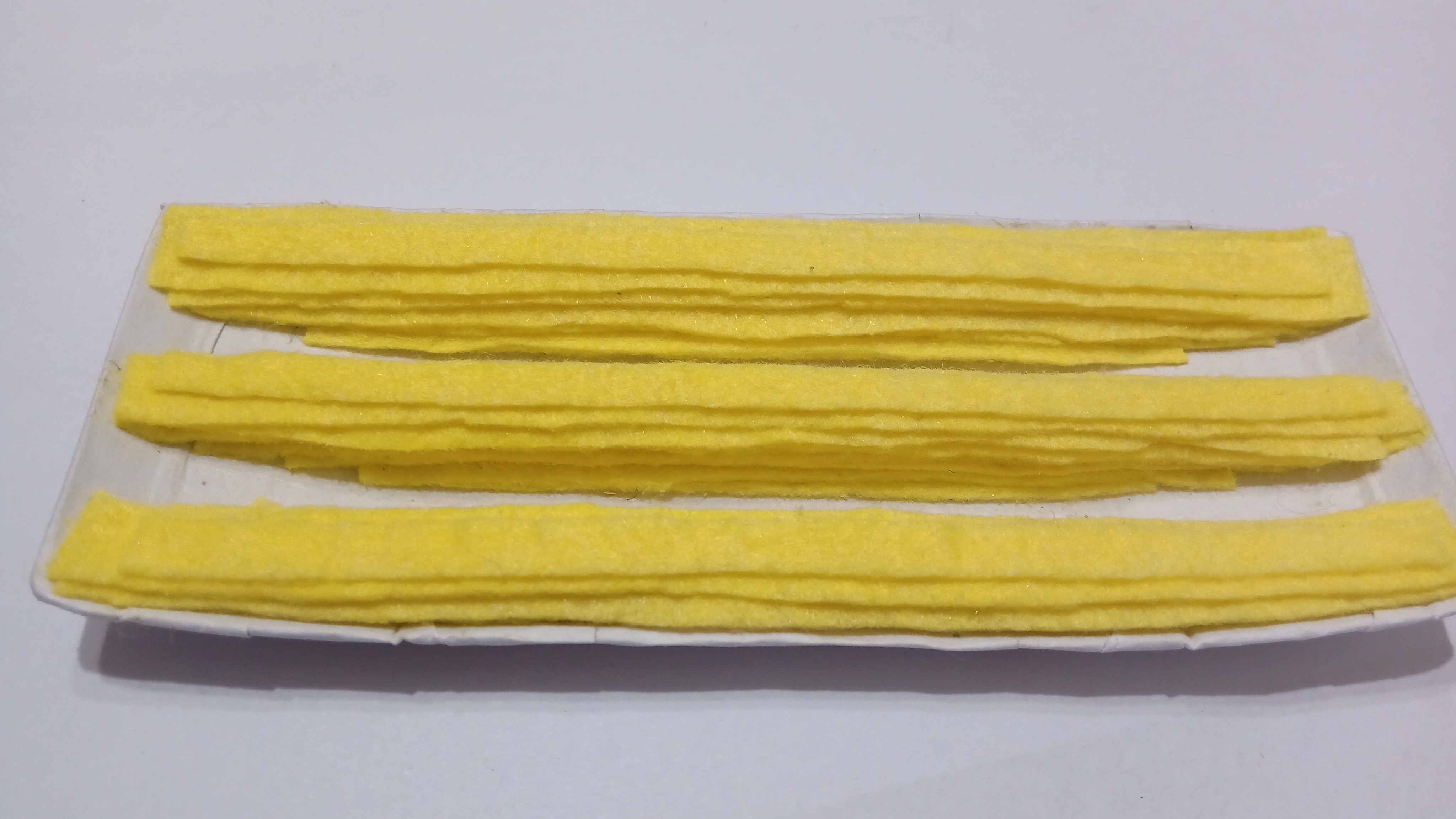 da cui abbiamo abbandonato il sistema a fascia elastica, sostituendolo con un sistema a culla molto più elegante. Componiamo lo stesso con più strati di ripieno per ottenere la forma dei presepi...