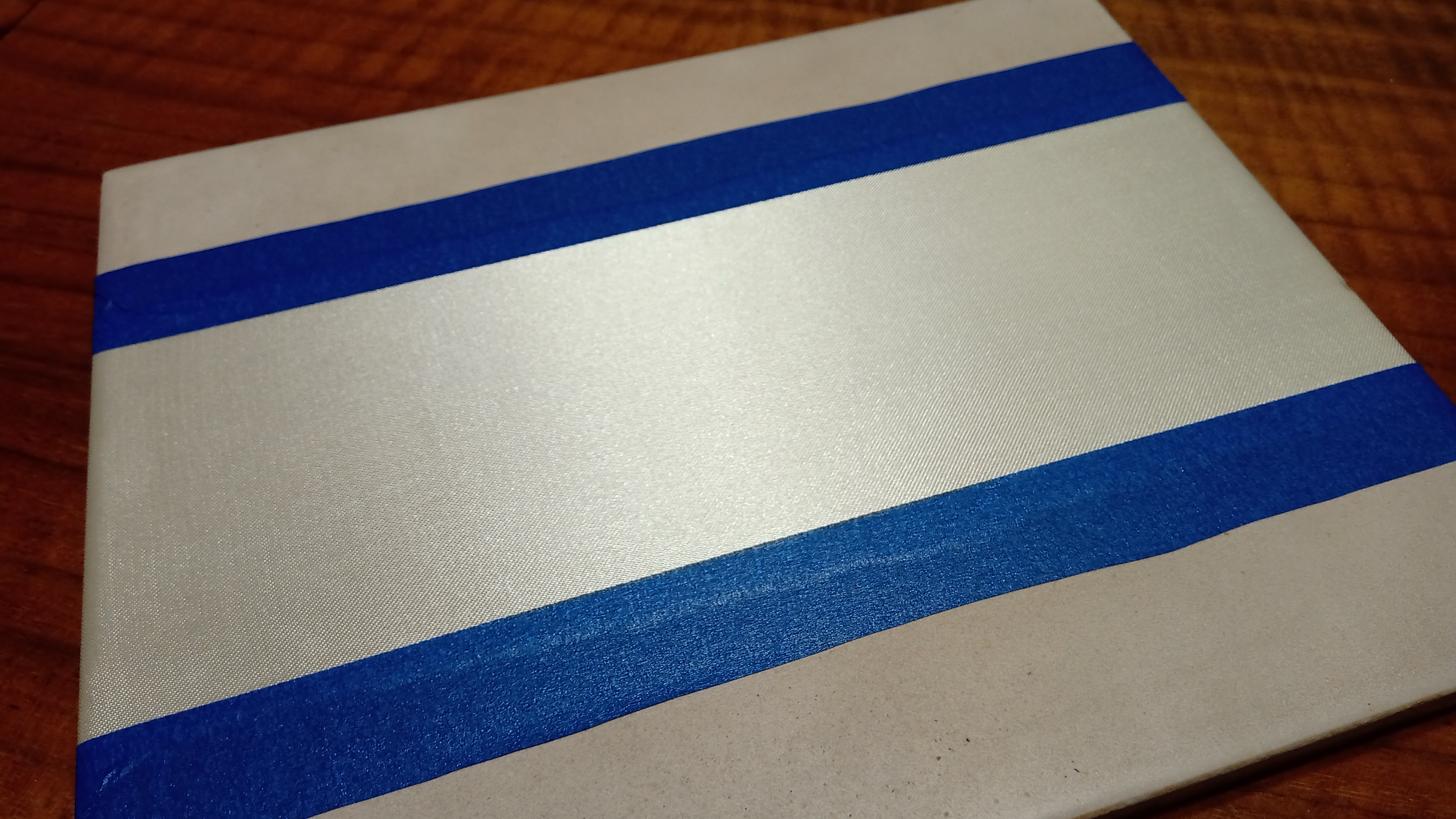 Ora è il momento di preparare il tessuto da stampare che verrà posizionato sulla copertina, e che sarà ben teso e fissato su una base...