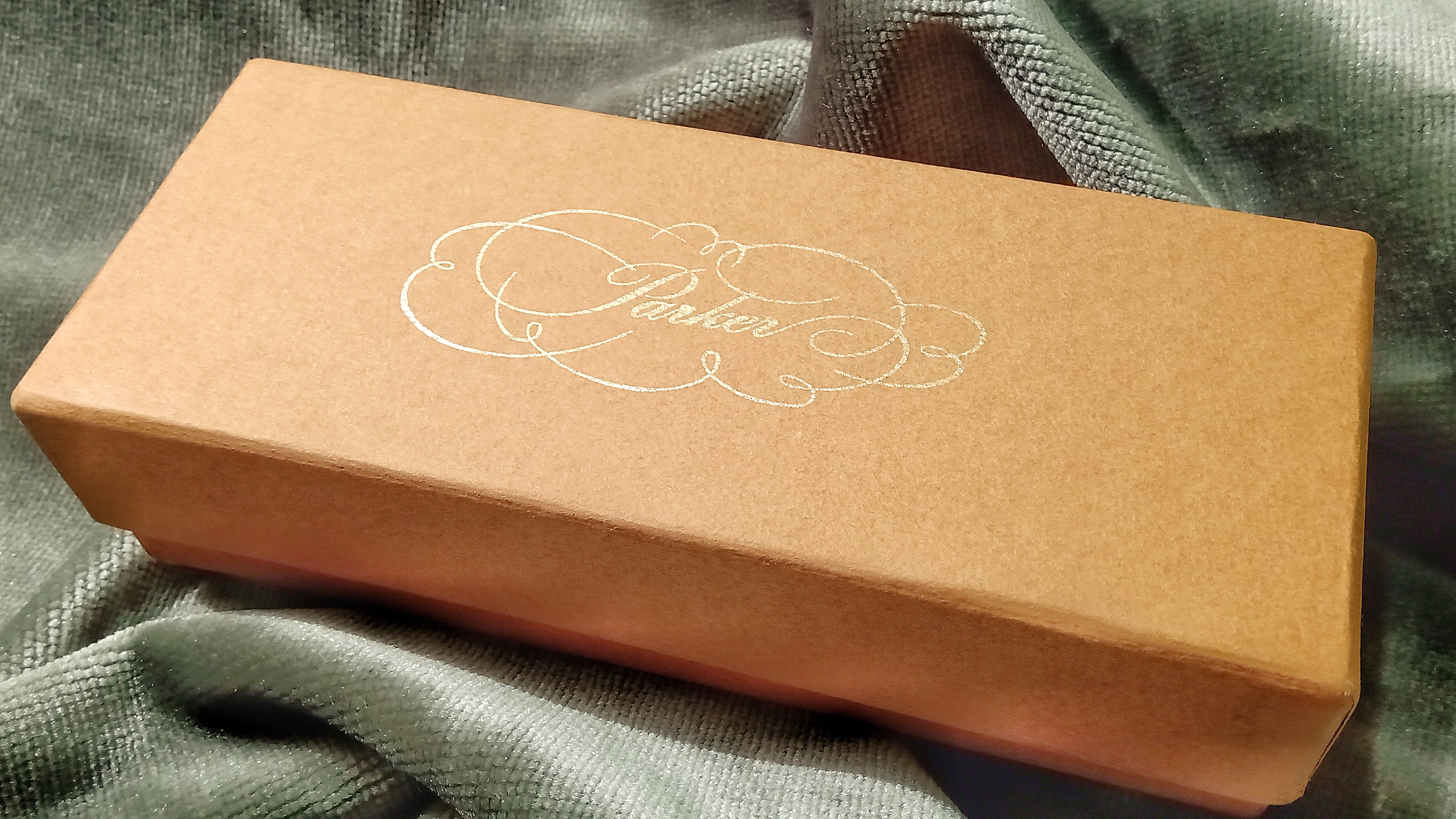 Si prosegue con il coperchio della scatola, che una volta assemblato verrà rivestito con lo stesso cartoncino goffrato, che riceverà un logo del brand, stampato con inchiostro oro, prima di essere incollato.