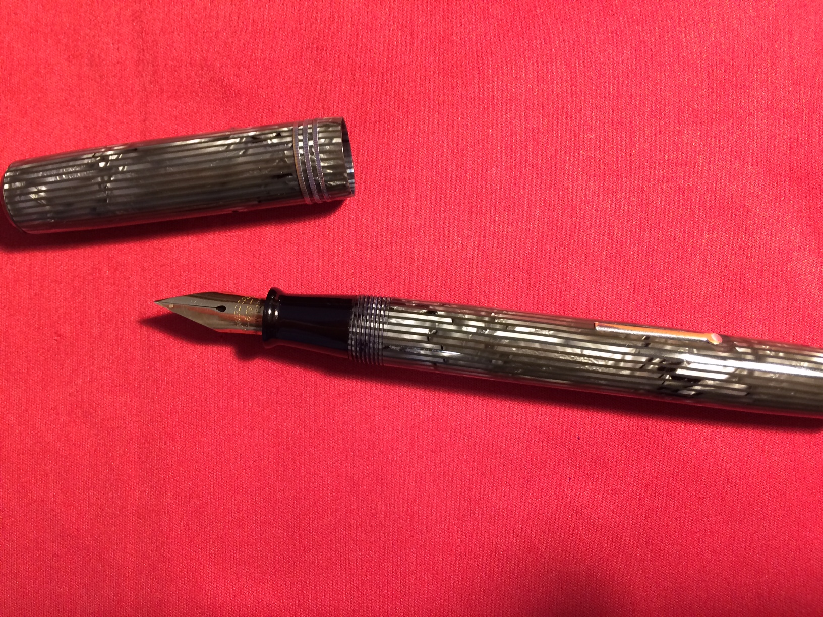 E' una MT Swan che appartiene alla tarda, se non ultima produzione americana del marchio e non è una penna così comune, specialmente da ritrovare in Italia, men che meno nel Regno Unito, dove questi modelli non vi hanno messo piede praticamente per nulla essendo tipici del mercato US.