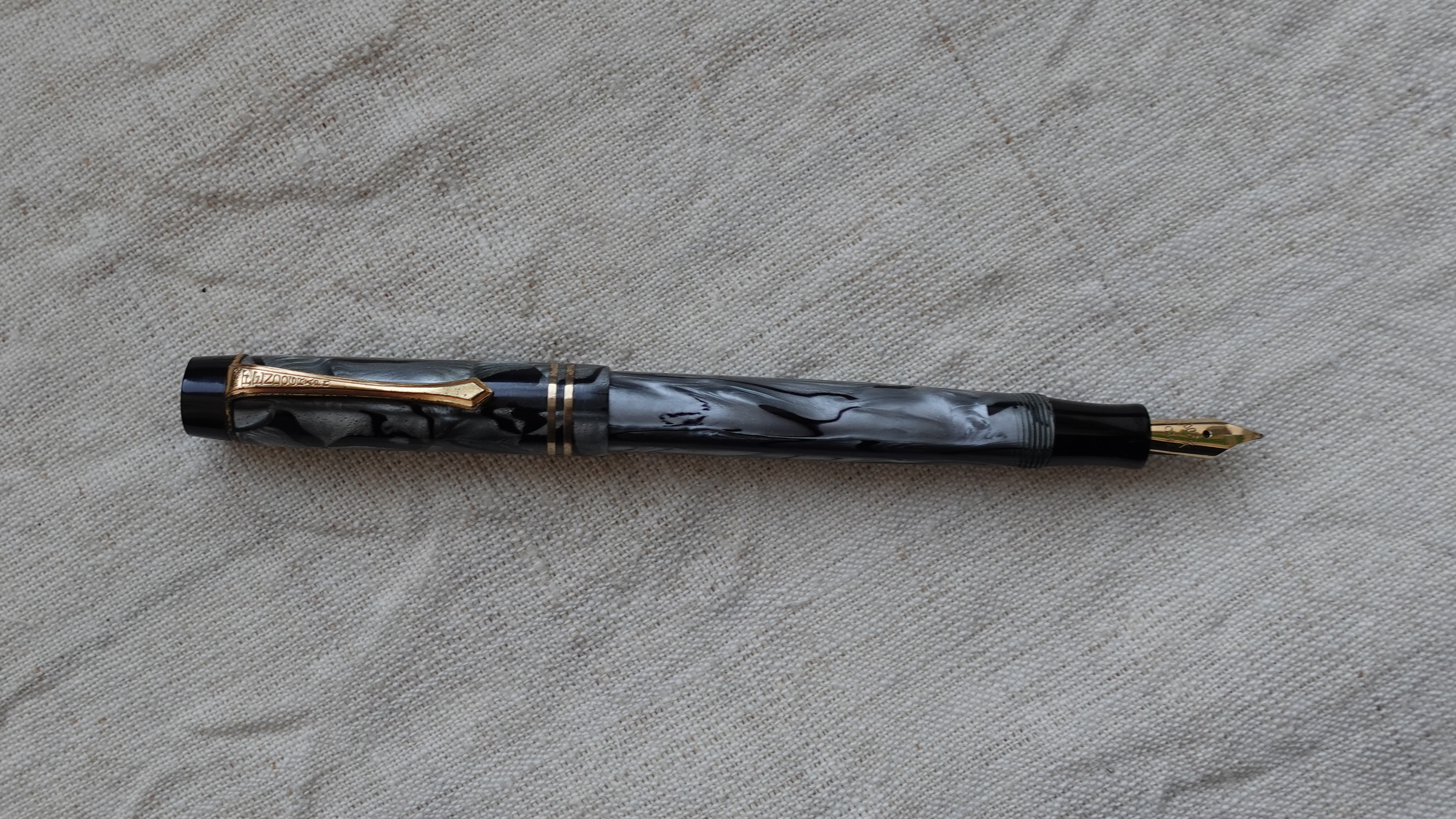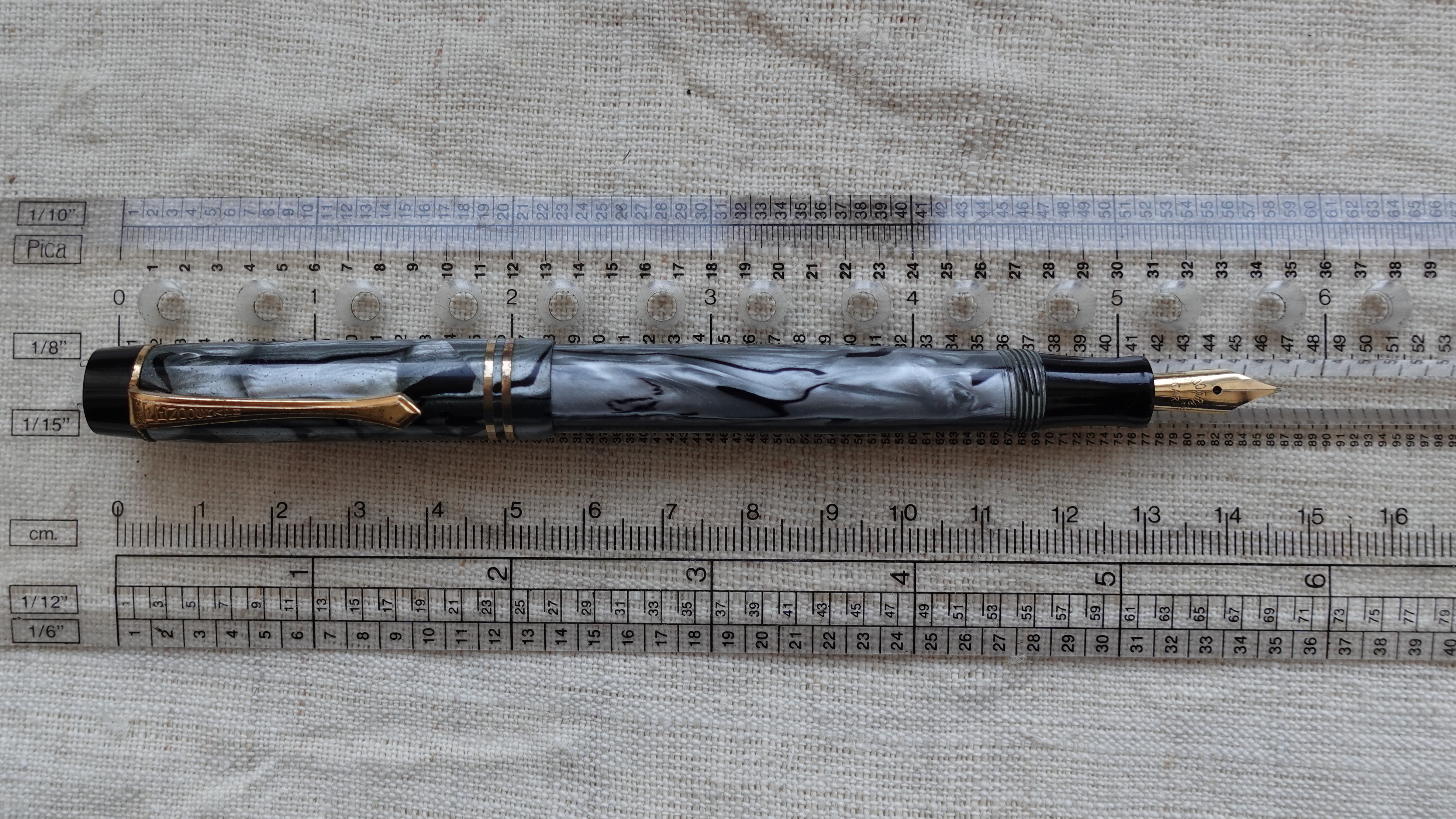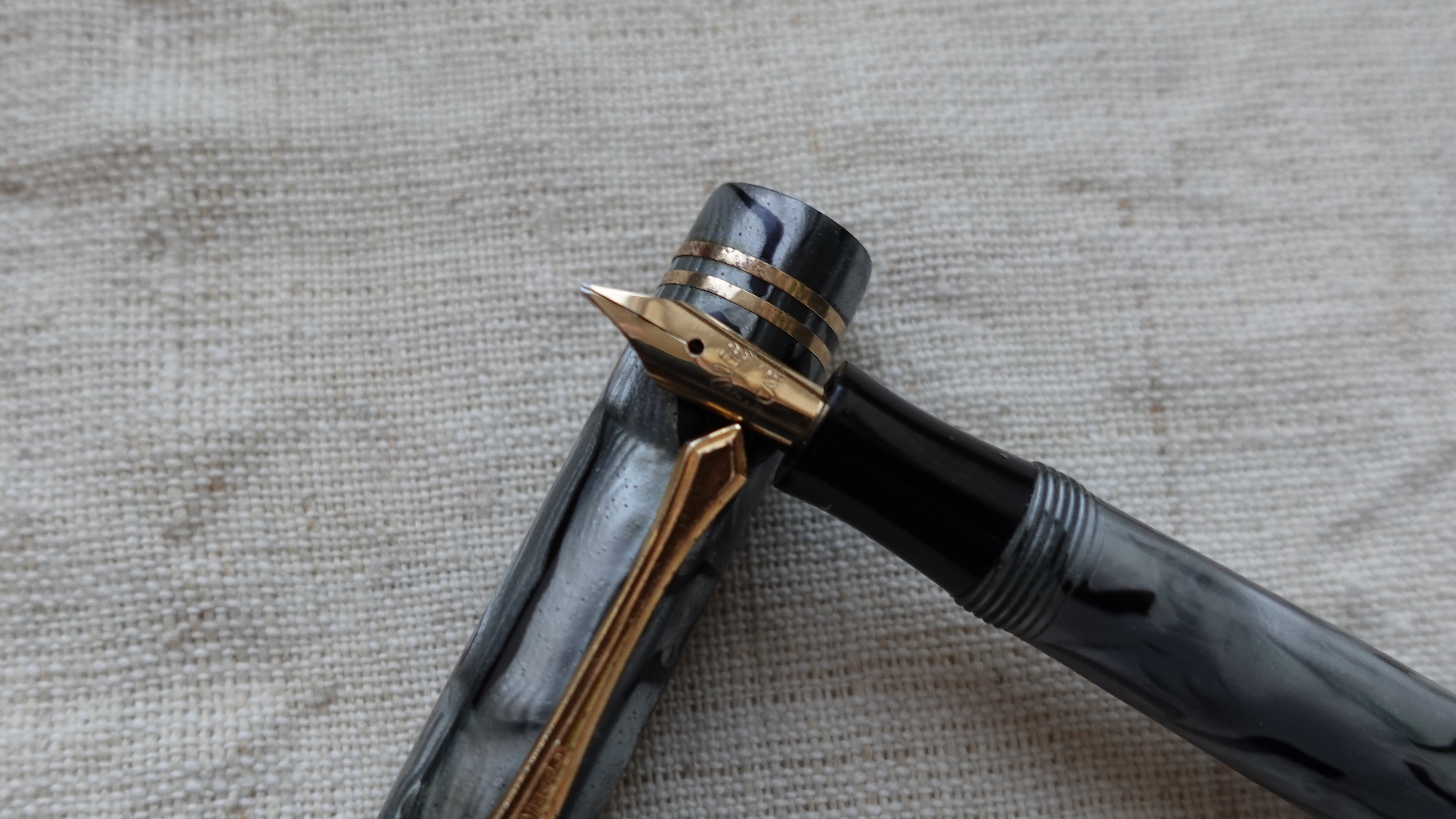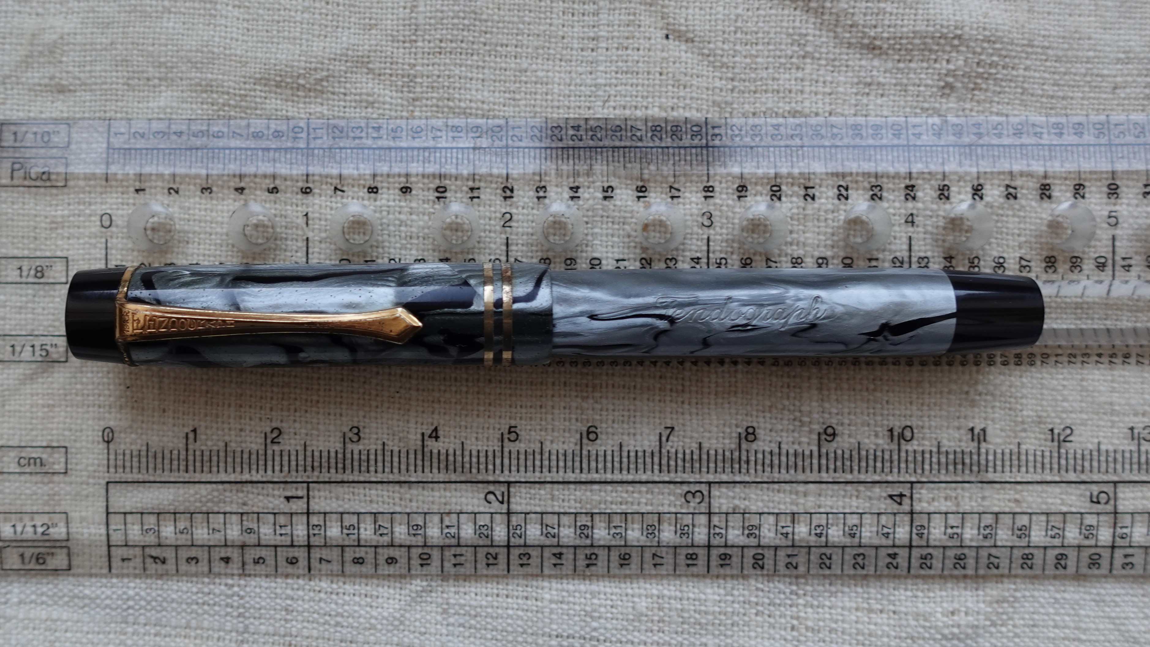 Quanto alla datazione è altrettanto semplice: il modello che viene spudoratamente copiato/omaggiato/cinesato :lol: è la Parker Duofold, nella sua seconda versione, quella "streamlined" (come si evince dalla forma della testina, dalla "washer-clip", dai 2 anellini, dalla sezione liscia e dal fondello smussato che copre il pulsante di fondo), introdotta solo nel 1929 in USA. Calcoliamo un paio d'anni perché la forma della penna divenisse davvero "di moda" anche qui da noi, ma non molti di più perché in Italia la punzonatura obbligatoria dell'oro (a noi interessa il pennino) passò dai carati ai millesimi (14 ct / 585) dal 1935.