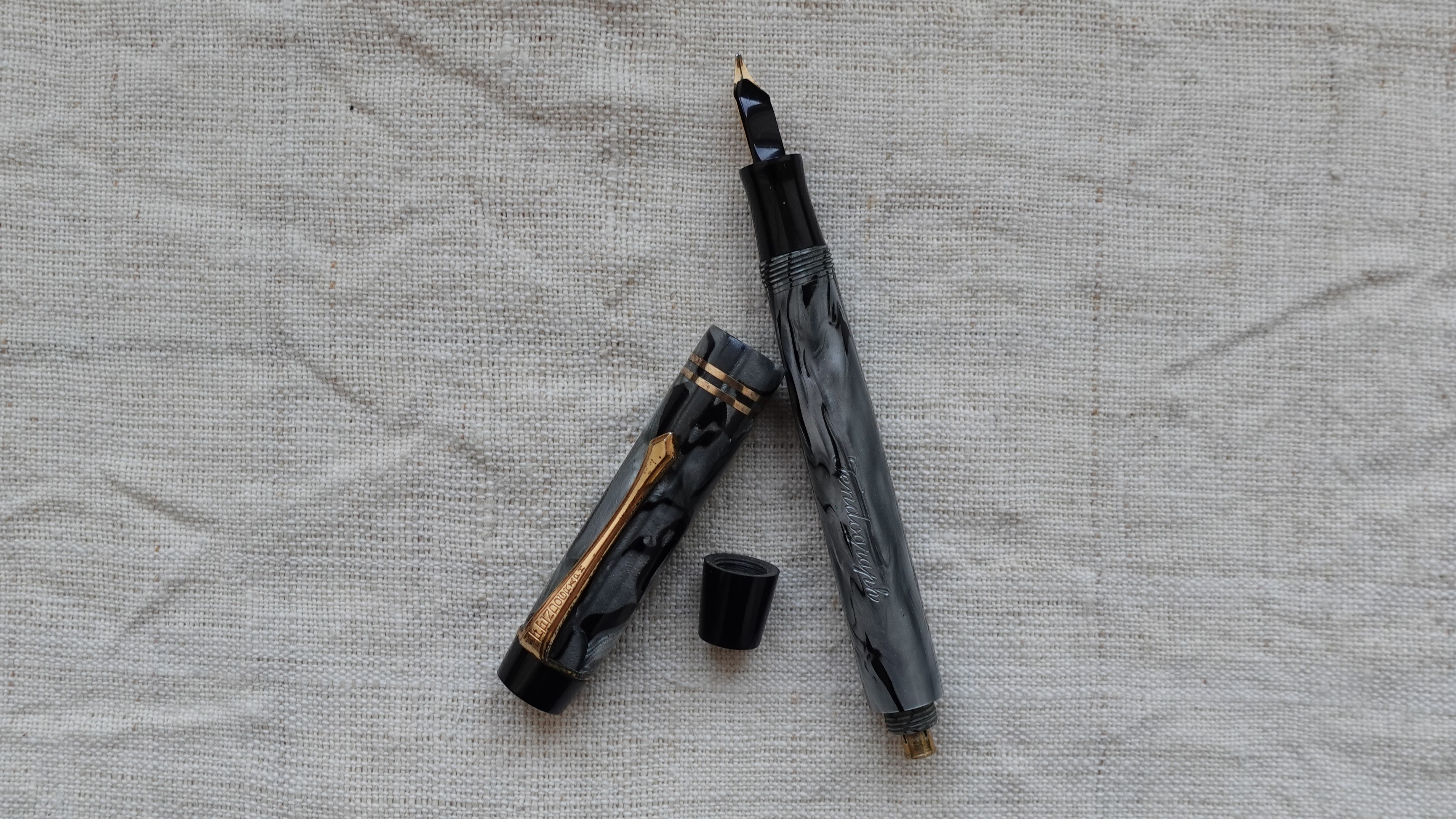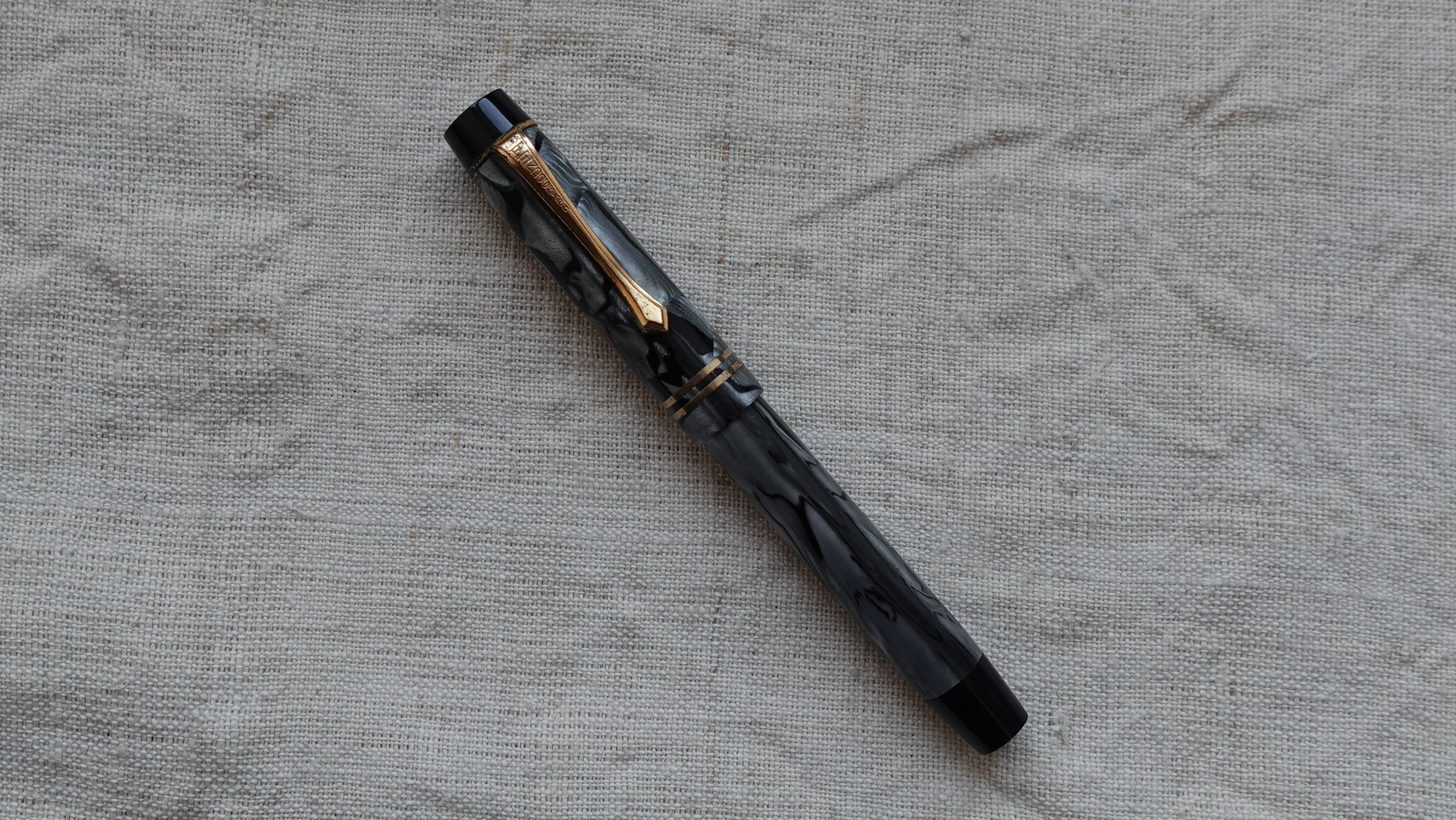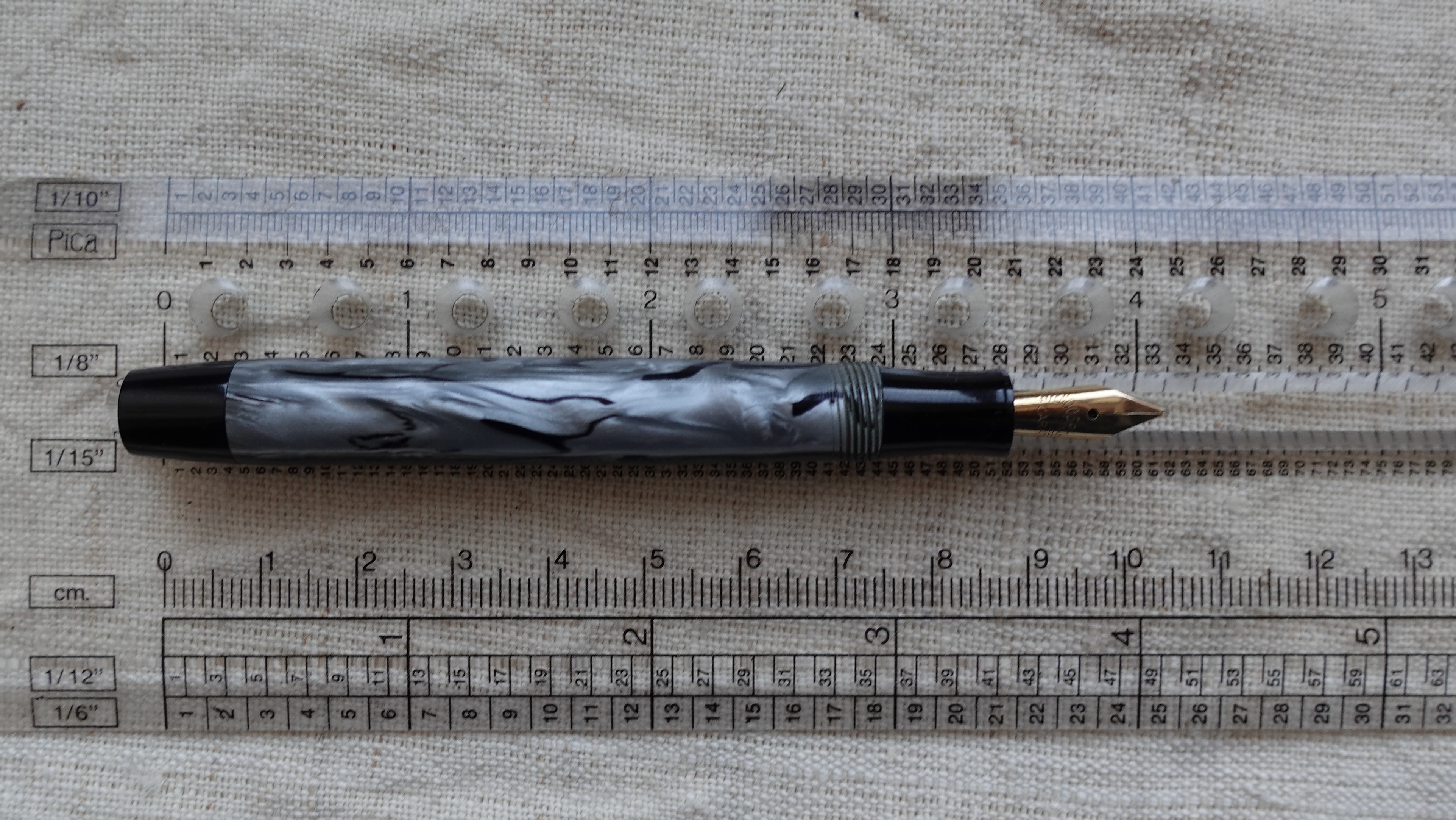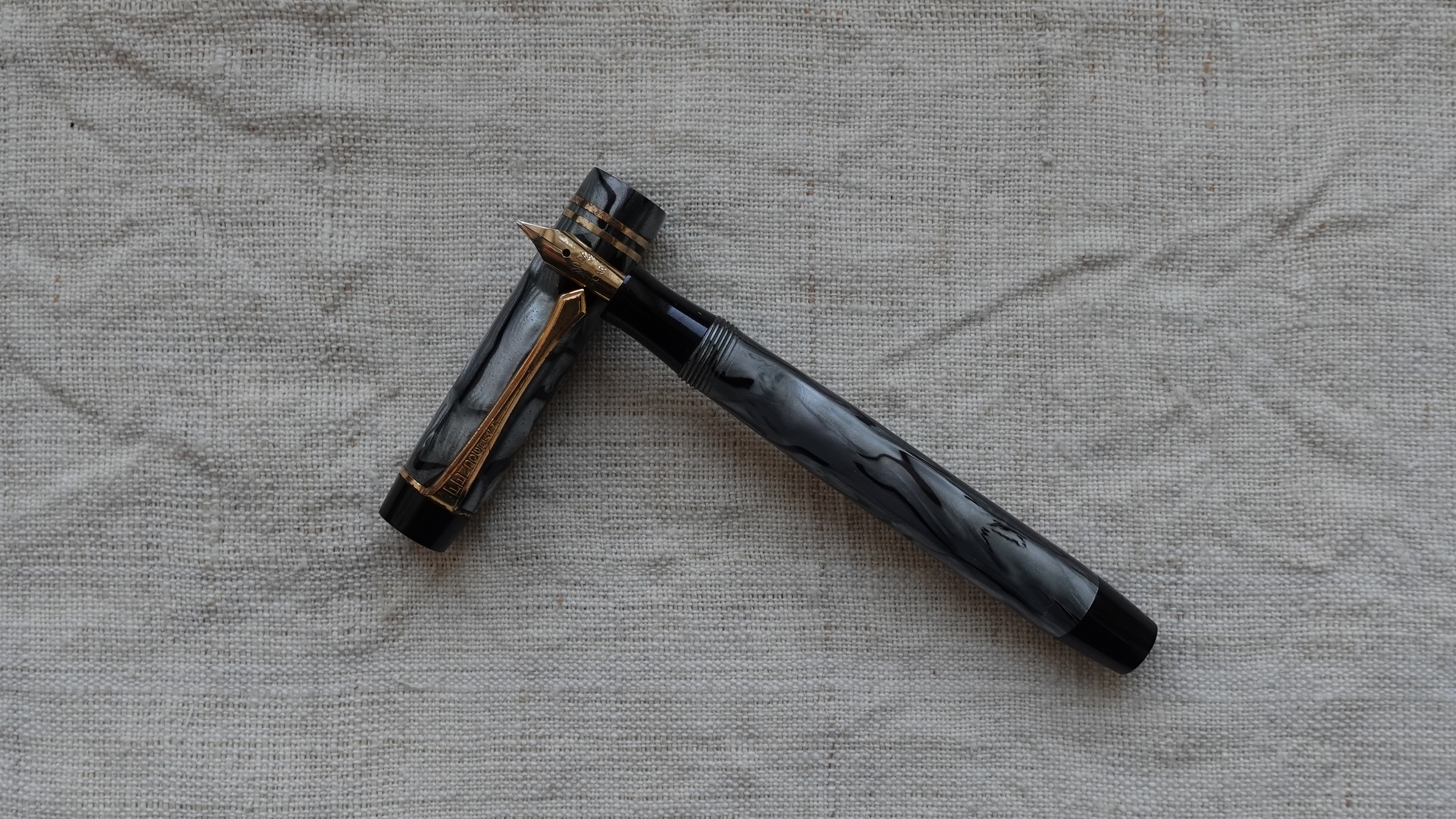 Quanto alla datazione è altrettanto semplice: il modello che viene spudoratamente copiato/omaggiato/cinesato :lol: è la Parker Duofold, nella sua seconda versione, quella "streamlined" (come si evince dalla forma della testina, dalla "washer-clip", dai 2 anellini, dalla sezione liscia e dal fondello smussato che copre il pulsante di fondo), introdotta solo nel 1929 in USA. Calcoliamo un paio d'anni perché la forma della penna divenisse davvero "di moda" anche qui da noi, ma non molti di più perché in Italia la punzonatura obbligatoria dell'oro (a noi interessa il pennino) passò dai carati ai millesimi (14 ct / 585) dal 1935.