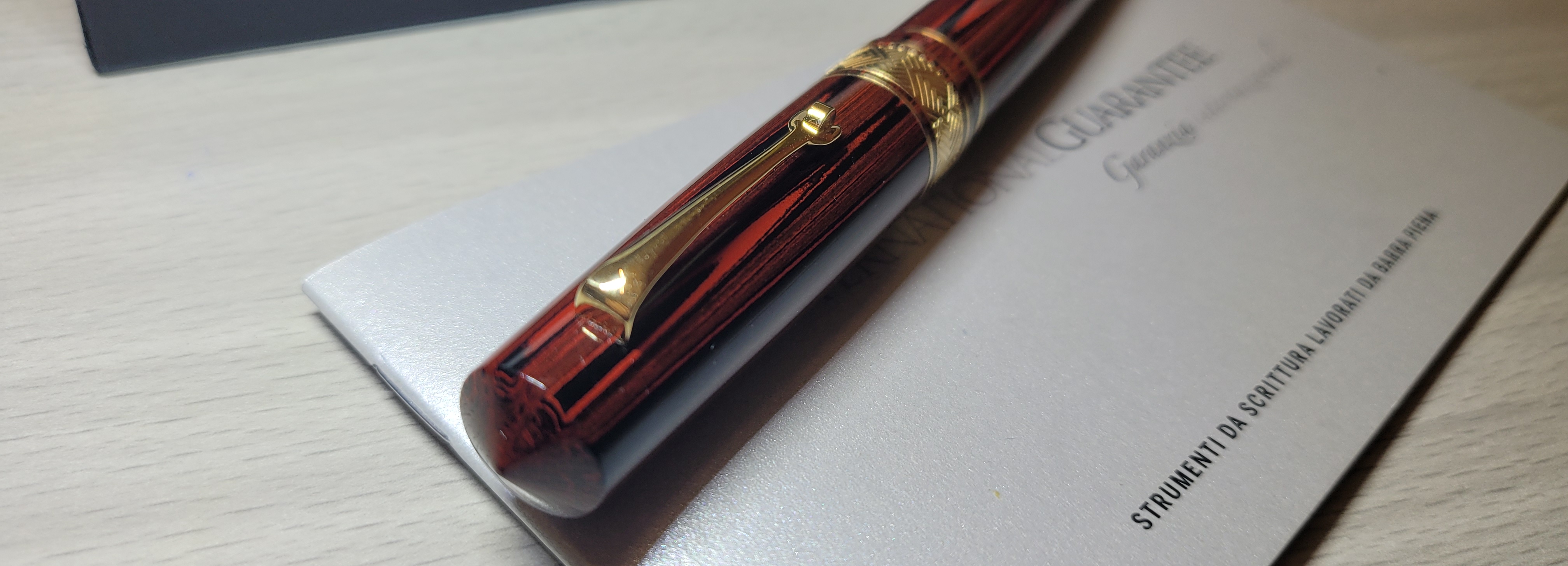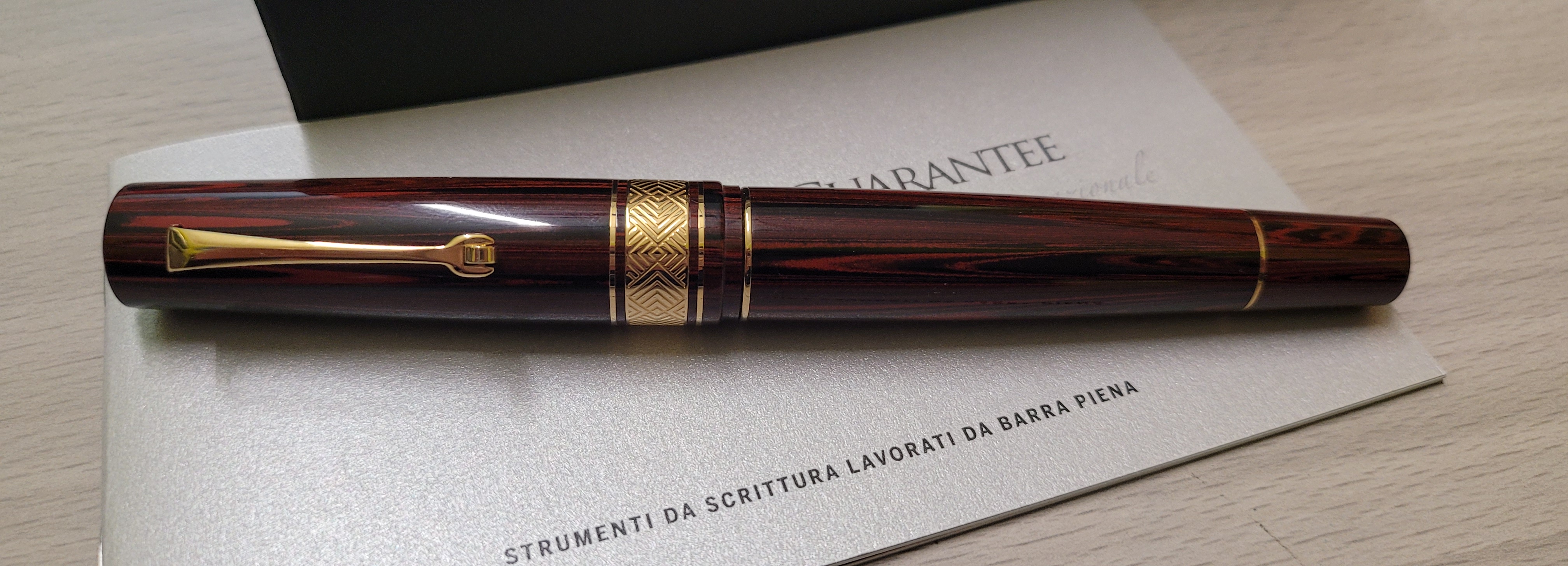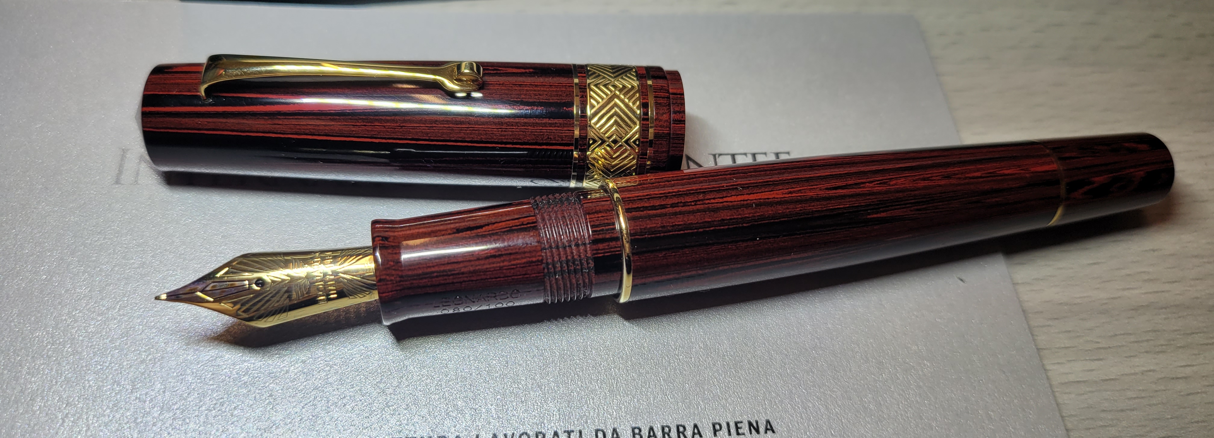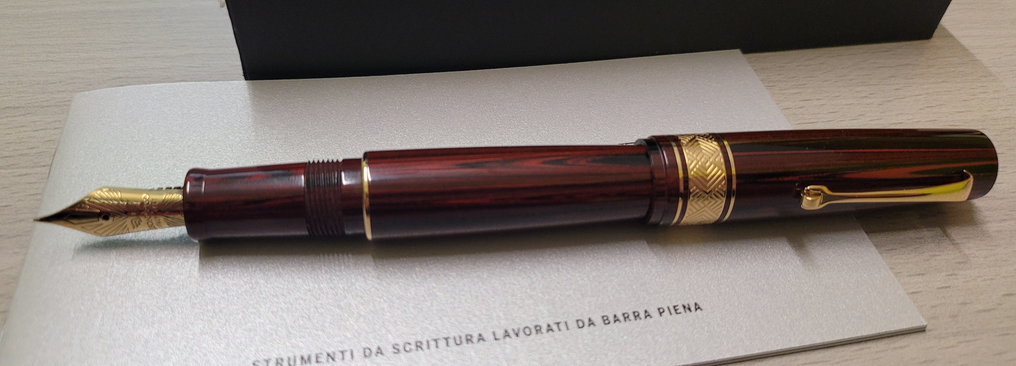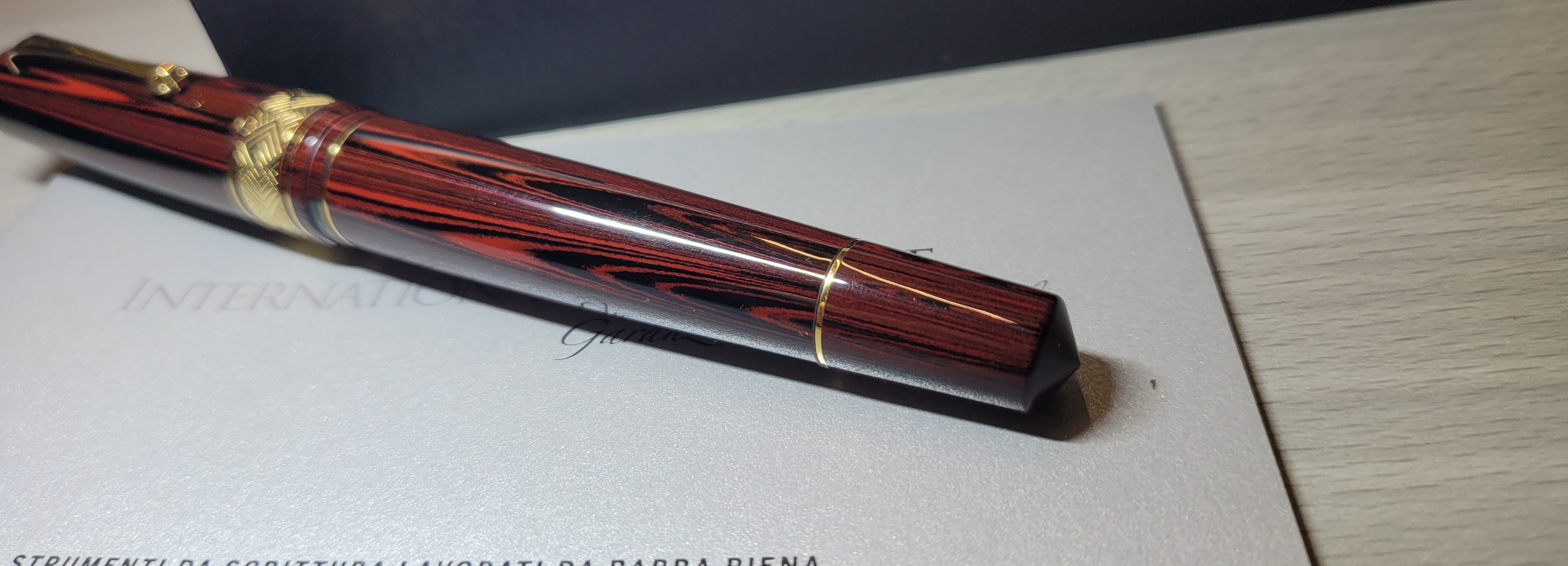Complimenti, davvero una gran bella penna. Il materiale è di una eleganza unica e poi sono penne dall'impugnatura molto comoda. Al Pen Show di Napoli ho avuto modo di provarla e se non fosse stato per il rene lasciato appena arrivato, me ne sarei portato sicuramente una a casa.