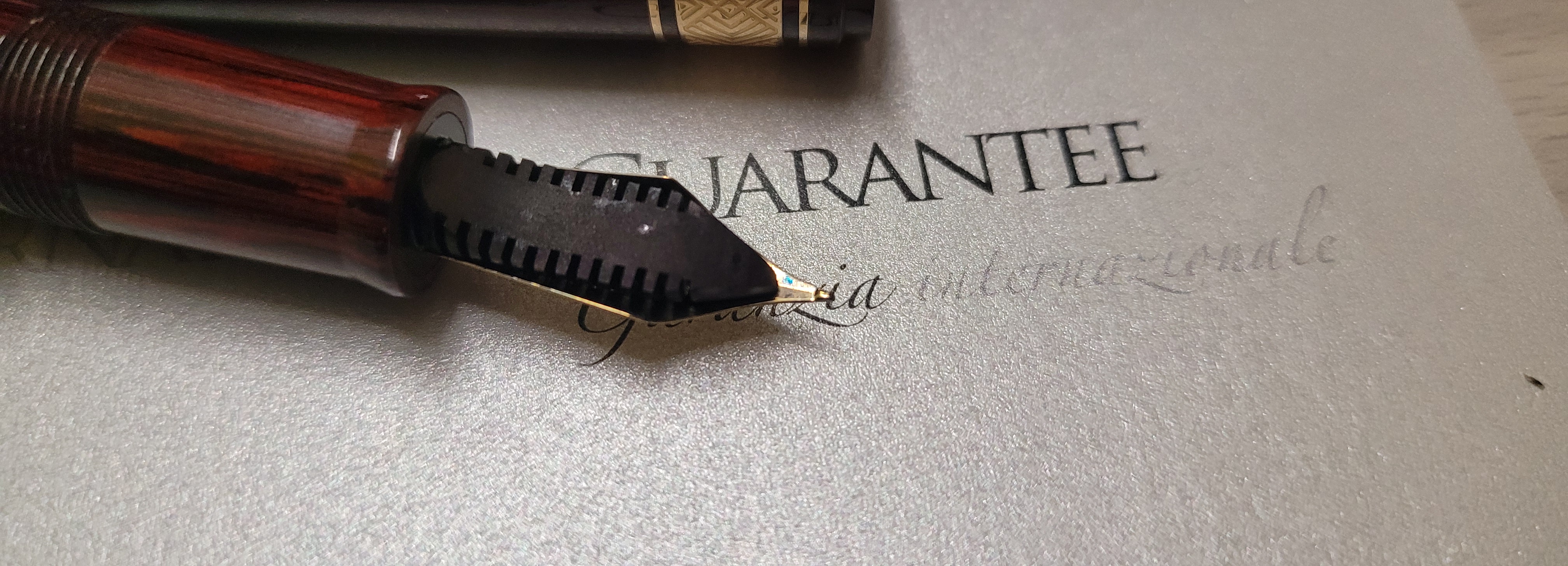 Di certo ha un tratto abbondante come una Montblanc 146 e anche le impressioni di scrittura sono quasi identiche. Difatti il pennino è estremamente levigato e scorrevole, quasi senza alcun feedback, molto molto diverso dai pennini Jowo. Le mie impressioni di scrittura sono simili ad una Montblanc 146 ma appena più scorrevoli, inferiori di poco ad una Aurora 88 Big rebbi lunghi.