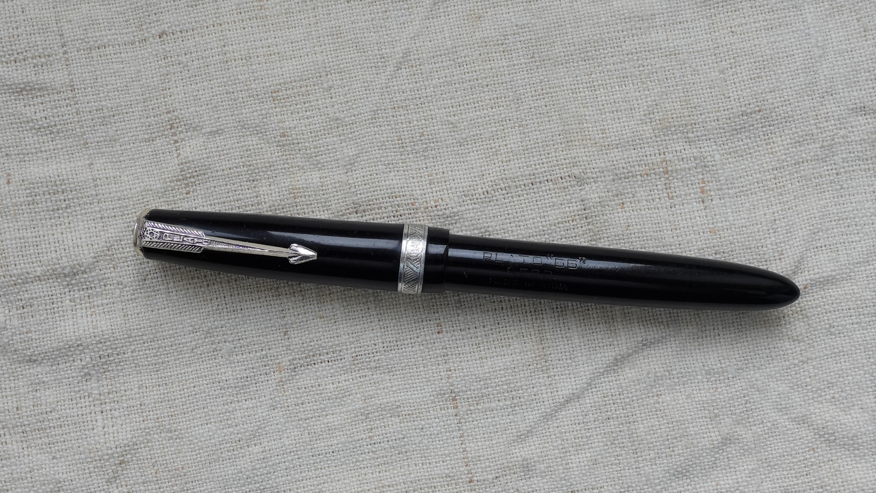 Il modello 66 dovrebbe essere stato prodotto ad inizio anni '60 dalla Mhatre Pen Plastic Industries a Mumbai . Sono sia in versione eyedropper come la tua, sia a levetta con sacchetto d'inchiostro.