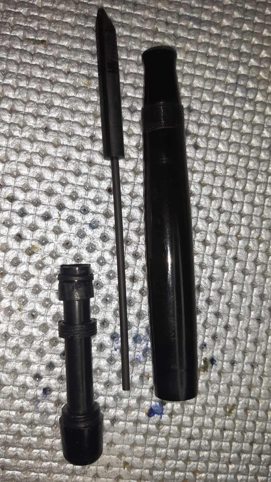 Le altre foto sono della prima che ho trovato, nera, versione con tre verette fine. Questa la ho fatta smontare da un riparatore perché mi sa che la vite dello stantuffo è incollata al fondello...infatti nemmeno chi me la ha riparata ha svitato quella ma ha usato una chiave per estrarre direttamente la ghiera filettata con tutto il blocco del pistone, sughero compreso. Poi non è nemmeno riuscito a svitare la piccola ghiera all'estremita del pistone che gli impedisce di sfilarsi da dietro, evidentemente incollata pure quella (la ha tagliata e sostituita con un ricambio altrimenti non sarebbe riuscito a inserire il suchero). E è impossibile svitare pure la sezione, pare incollata anche quella.
