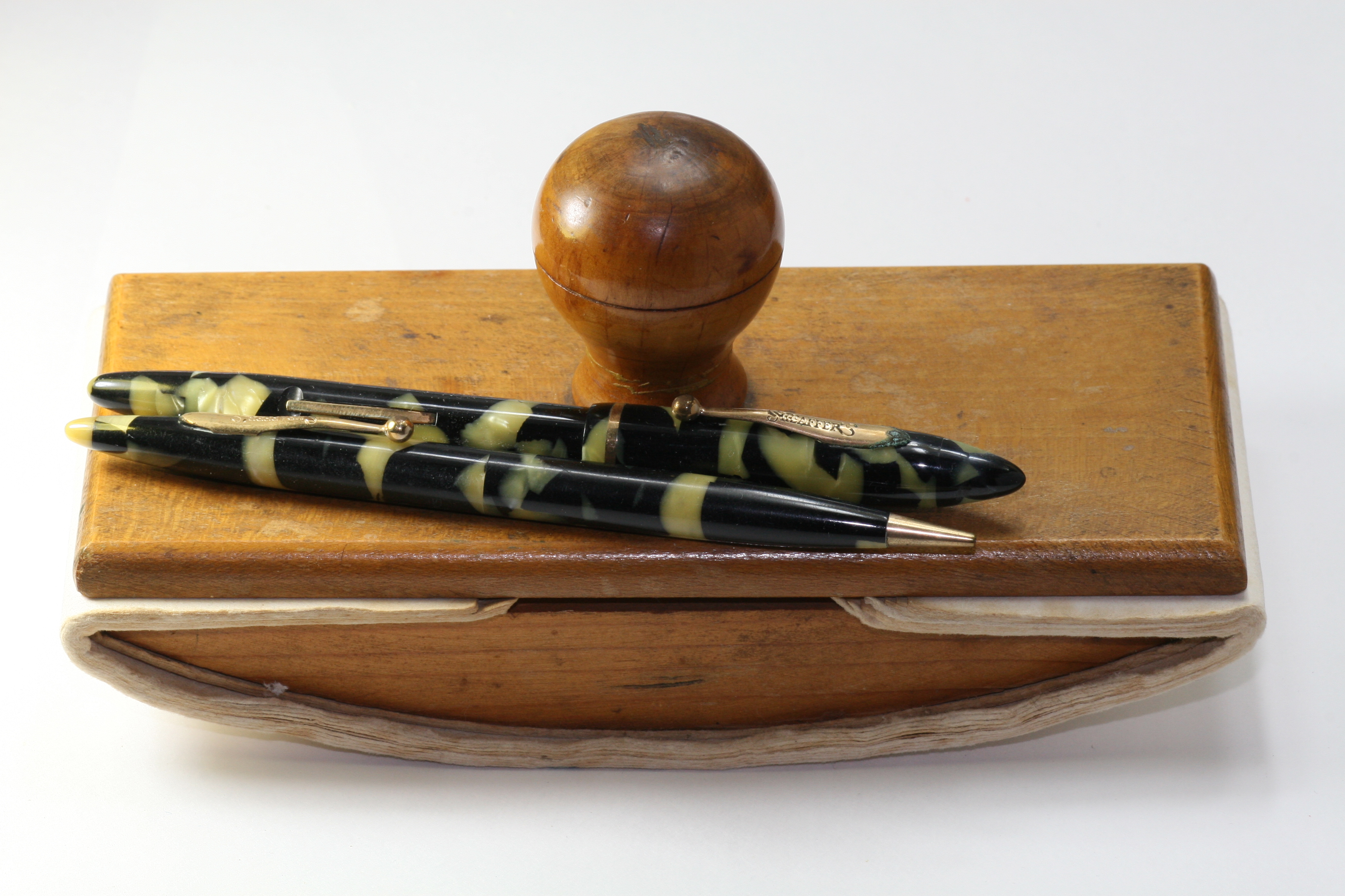 Apro un nuovo argomento a se stante al di fuori del solito "mostrate le vostre penne" perché vorrei stimolare e spingere all'emulazione la comunità per parlare un po' delle parure stilo/portamine, un'accoppiata un po' in disuso ma che a me ha sempre affascinato.