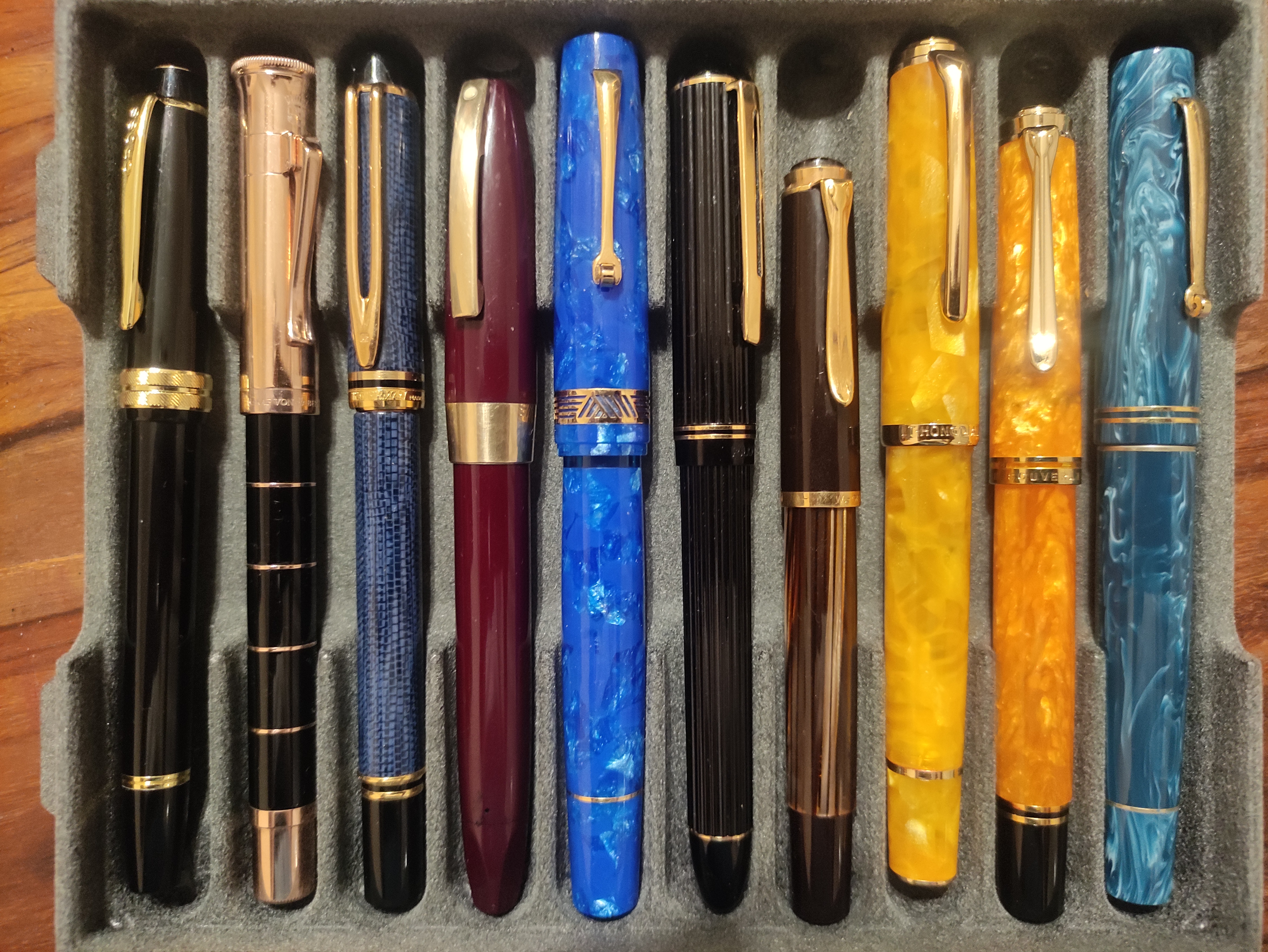 Ma il Syrah è sul bordeaux, non ci va in una penna arancione :lol: Per me, in penne arancioni se non si vuole fare il tono su tono, ci vanno inchiostri neri, blu o verdi. Il resto no