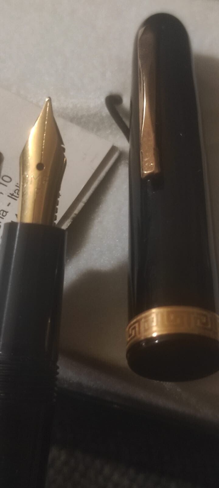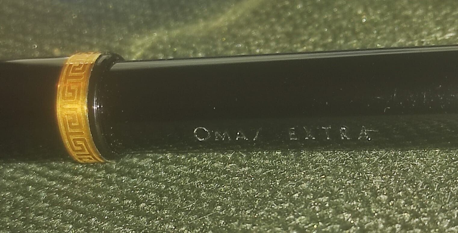 Come ti hanno già detto è una Omas Extra 620. Ne ho due, una perfetta che fino ad oggi (facciamo tutti gli scongiuri e riti scaramantici conosciuti dal genere umano) non ha problemi di ristrungimenti che aveva un pennino M ed una seconda che ho preso a pochi euro solo per poter prelevare il pennino F e scambiarlo con la penna sana. Considerando che è nella confezione regalo con il calamaio grande il venditore non chiederà poco e se non riesci a provarla non so quanto ti convenga rischiare.