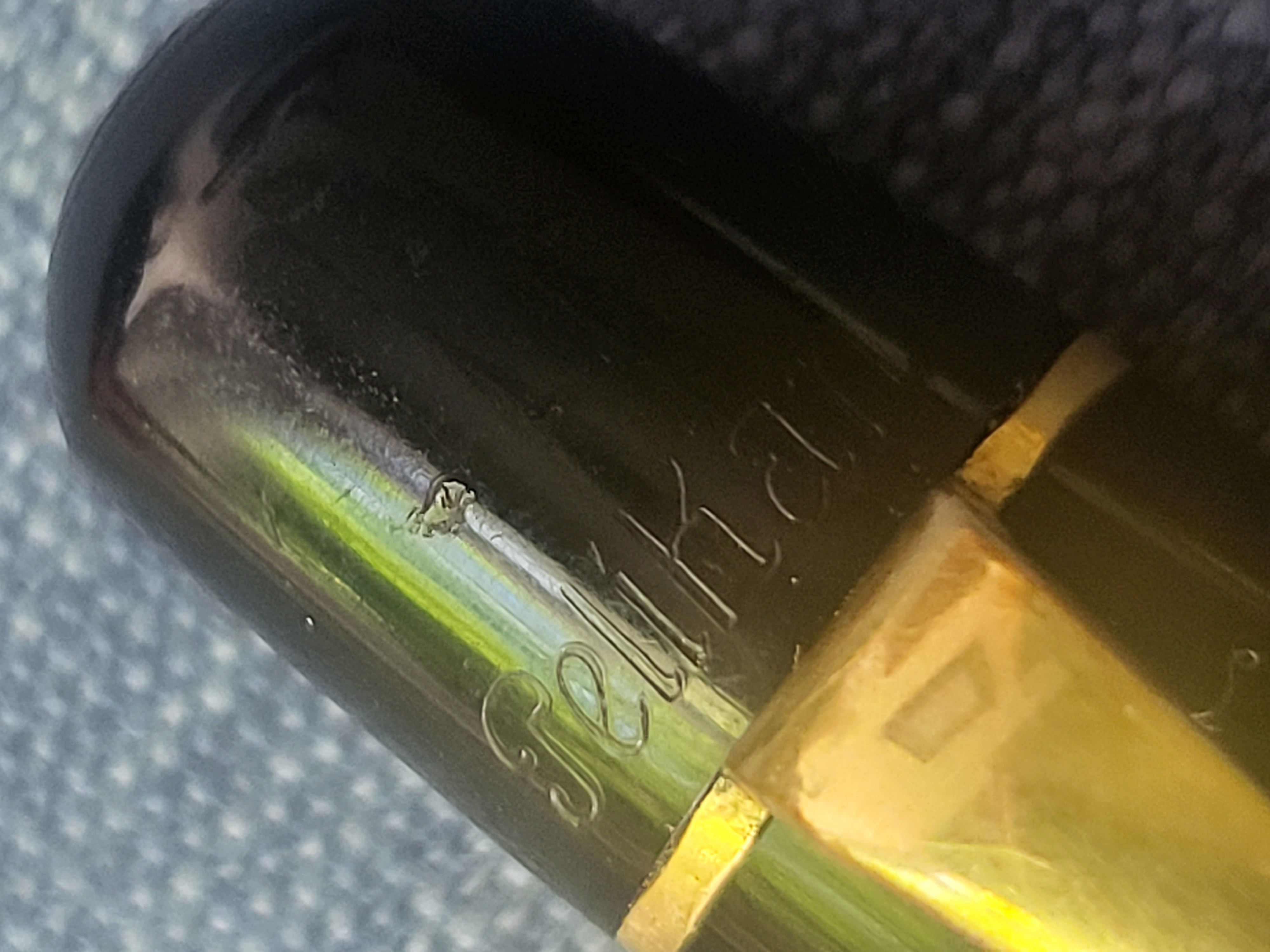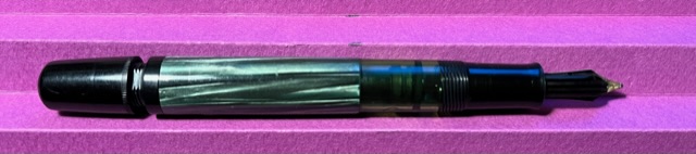 La 100N senza scalino è la versione prodotta in Italia precisamente a Milano. Da quel che ho capito, la penna non è realizzata con il binde su cui viene sovrapposto il cilindro di celluloide ma sono le due parti trasparente e celluloide colorata unite direttamente (non saprei come però!) Pur essendo una penna che ha un suo valore collezionistico in media hanno problemi di diversi restringimenti dei materiali per cui la guarnizione va stretta nella parte trasparente e larga nella parte colorata. Non è semplice risolvere e non sempre si risolve, tipicamente bisogna trovare un oring che avendo una sua elasticità va a compensare i diversi diametri interni.
