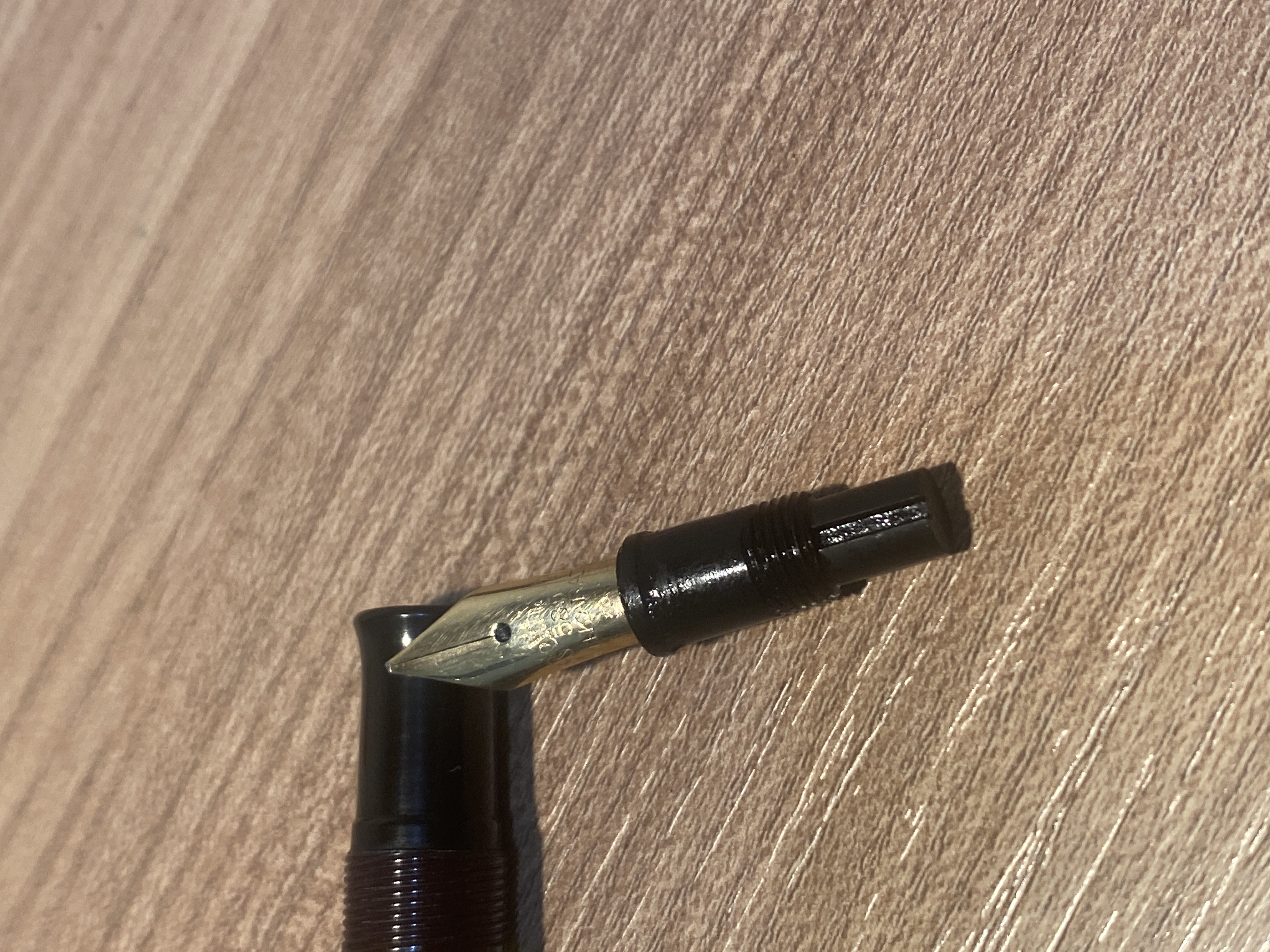 :!: la foto, presa dalla baia, allegata descrive una 100N coerente con il periodo? È un secondo tipo visto che non c'è scalino tra il corpo e l'impugnatura. L'incisione sul pennino e cappuccio è corretta?