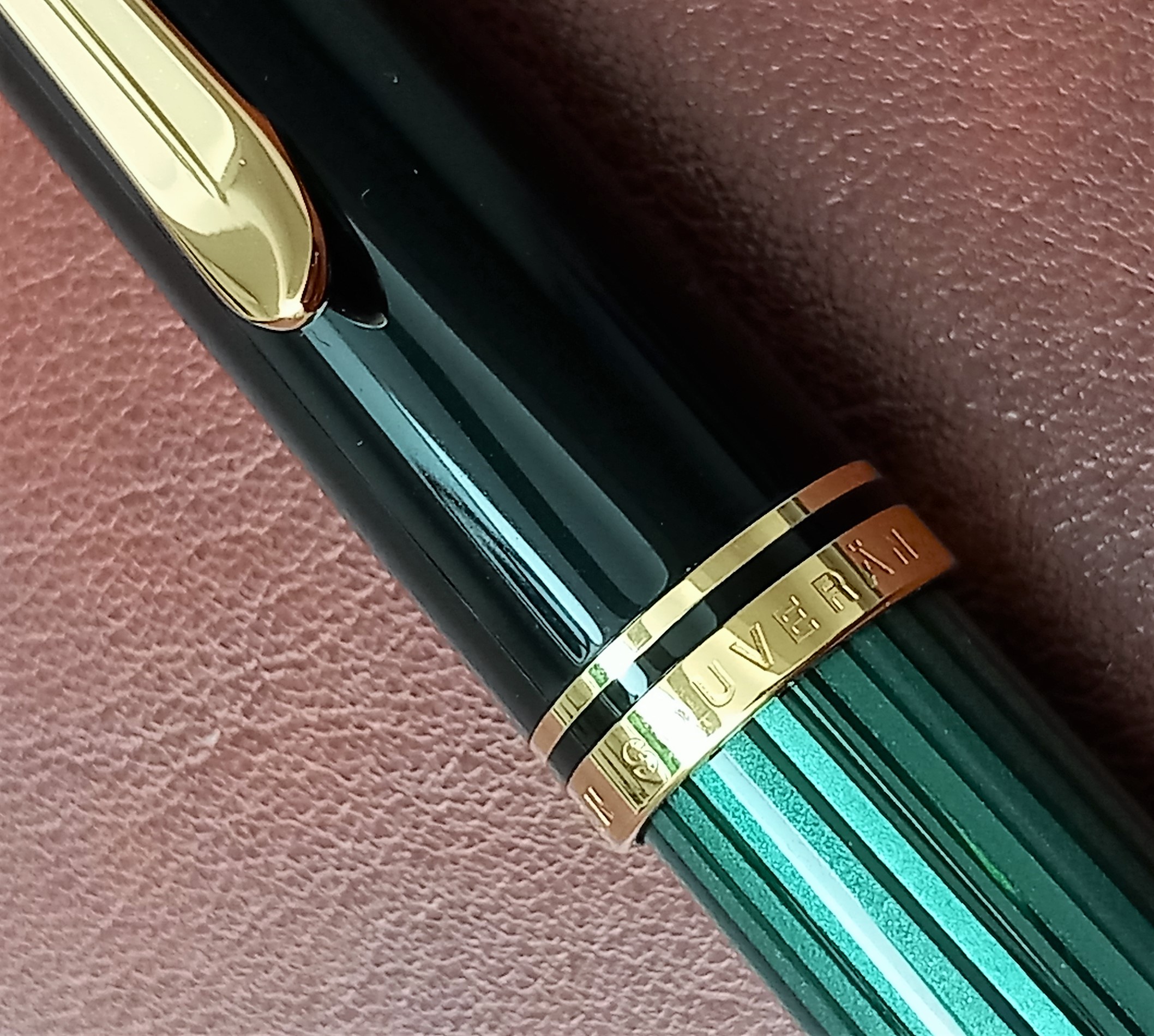 La livrea è quella classica verde e nera con finiture dorate, che trovo sempre elegante, non noiosa né scontata. L’alimentazione è a pistone, sistema di caricamento introdotto proprio da Pelikan nel 1929 ed ancora molto apprezzato. Il pennino è d’oro a 14 carati, bicolore e graziosamente inciso.