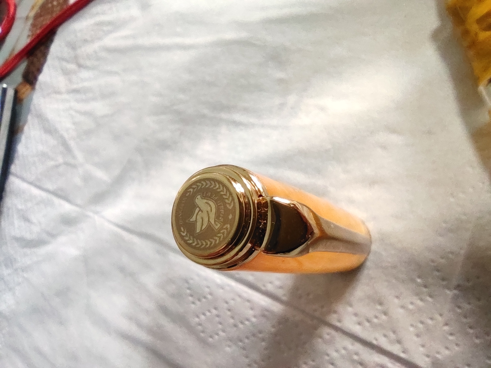 Cappuccio con incisione laser che raffigura la colomba della pace.