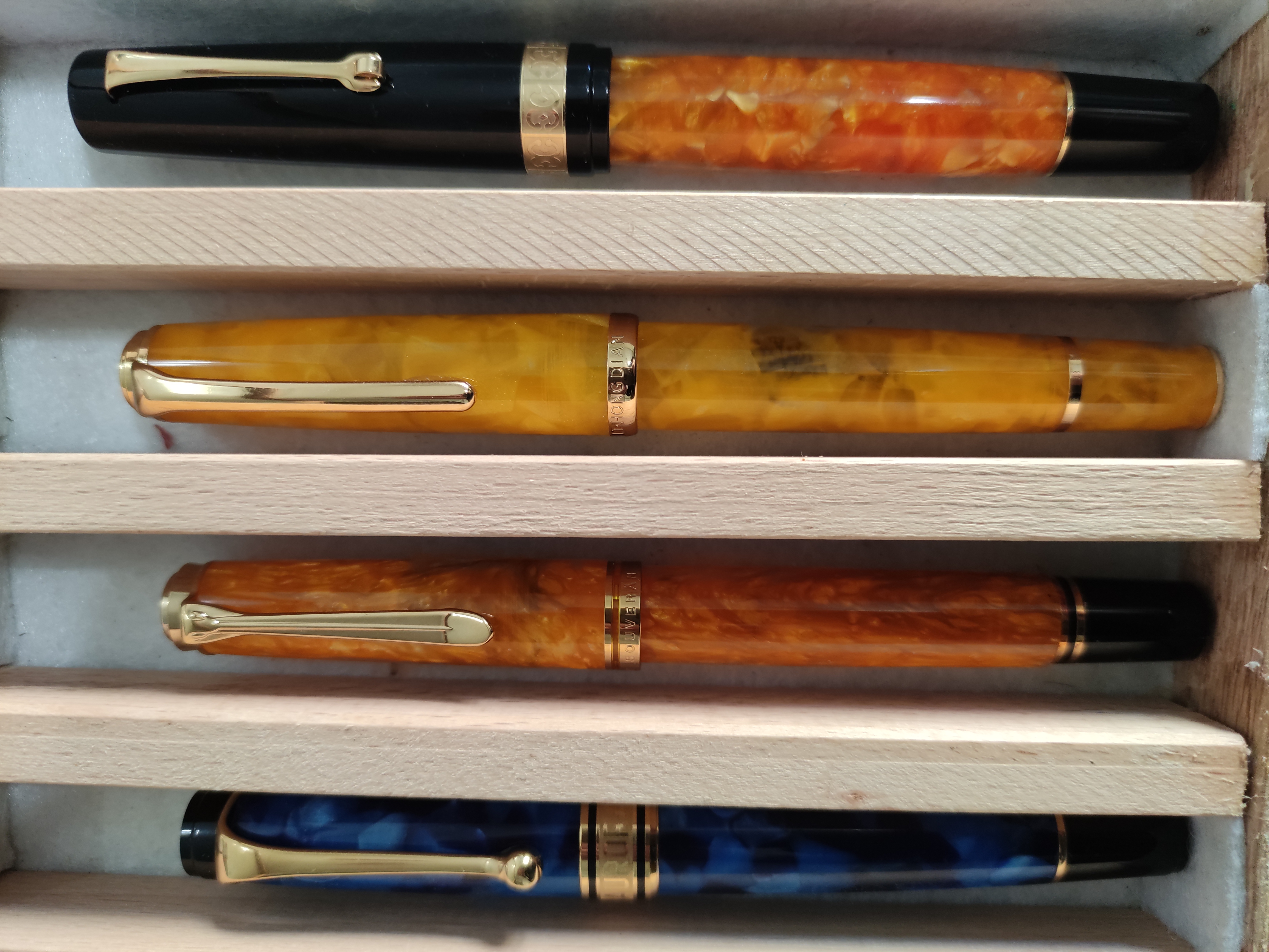 Leonardo DNA, Hongdian N1S, Pelikan M600 vibrant orange, Aurora Optima.